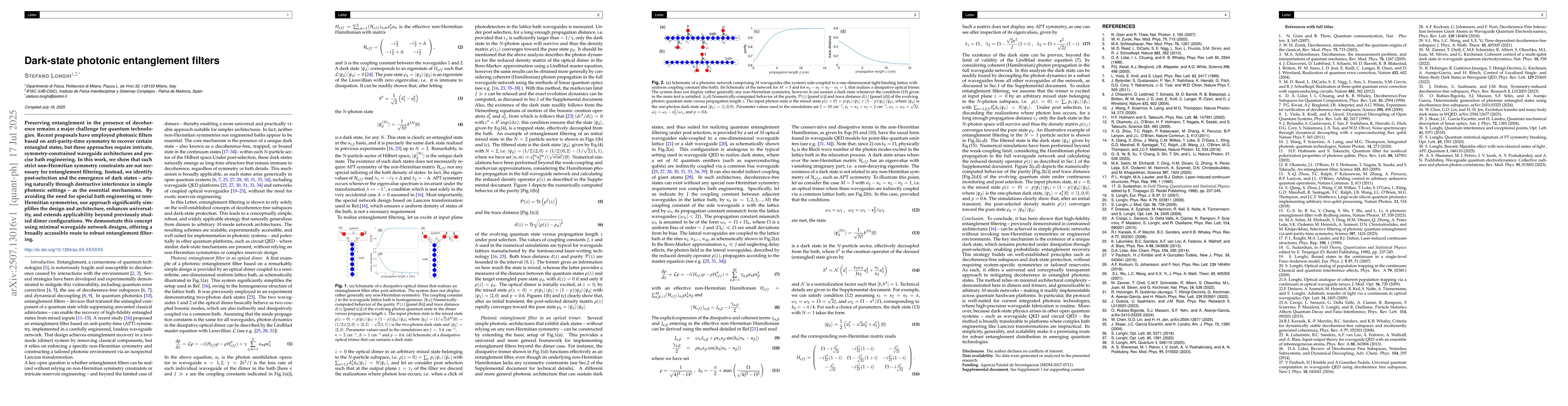 Preserving entanglement in the presence of decoherence remains a major challenge for quantum technologies. Recent proposals [M.A. Selim et al., Science 387, 1424 (2025)] have employed photonic filters based on anti-parity-time symmetry to recover certain entangled states, but these approaches require intricate, symmetry-constrained waveguide architectures and precise bath engineering. In this work, we show that such strict non-Hermitian symmetry constraints are not necessary for entanglement filtering. Instead, we identify post-selection and the emergence of dark states -- arising naturally through destructive interference in simple photonic settings -- as the essential mechanisms. By avoiding the need for special bath engineering or non-Hermitian symmetries, our approach significantly simplifies the design and architecture, enhances universality, and extends applicability beyond previously studied dimer configurations. We demonstrate this concept using minimal waveguide network designs, offering a broadly accessible route to robust entanglement filtering.