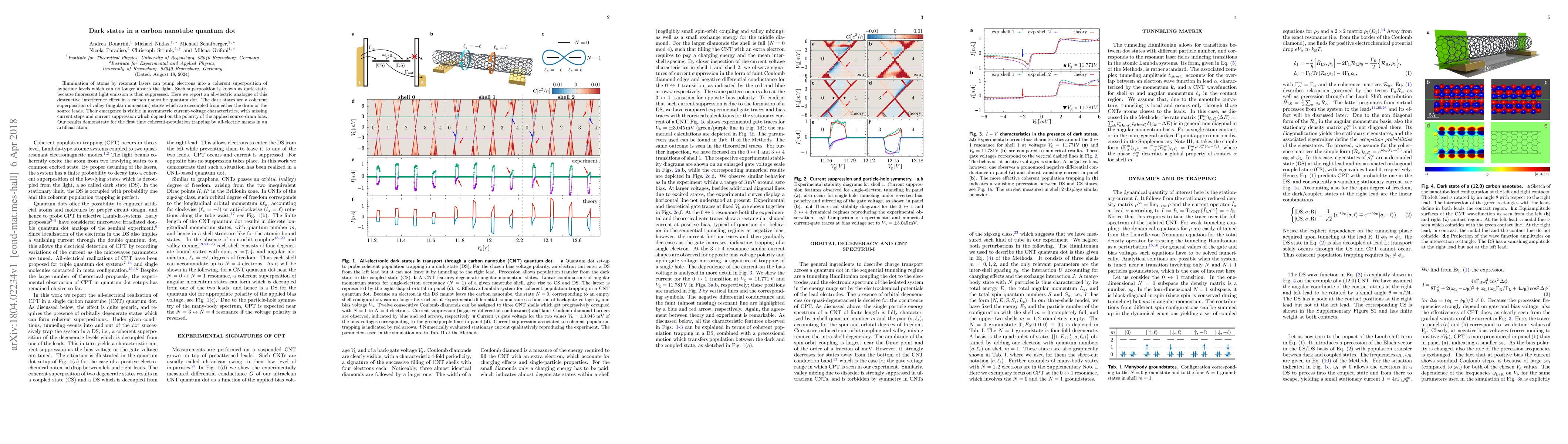 Researchers discovered a phenomenon called dark states in carbon nanotube quantum dots, where electrons form a coherent superposition of states that can't absorb light or current, leading to unusual current-voltage characteristics.