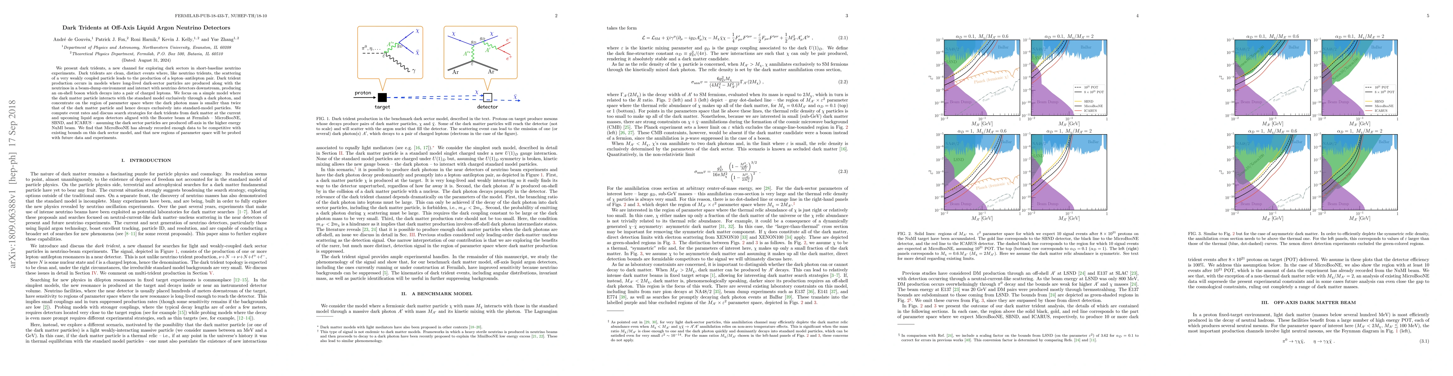 We present dark tridents, a new channel for exploring dark sectors in short-baseline neutrino experiments. Dark tridents are clean, distinct events where, like neutrino tridents, the scattering of a very weakly coupled particle leads to the production of a lepton--antilepton pair. Dark trident production occurs in models where long-lived dark-sector particles are produced along with the neutrinos in a beam-dump environment and interact with neutrino detectors downstream, producing an on-shell boson which decays into a pair of charged leptons. We focus on a simple model where the dark matter particle interacts with the standard model exclusively through a dark photon, and concentrate on the region of parameter space where the dark photon mass is smaller than twice that of the dark matter particle and hence decays exclusively into standard-model particles. We compute event rates and discuss search strategies for dark tridents from dark matter at the current and upcoming liquid argon detectors aligned with the Booster beam at Fermilab -- MicroBooNE, SBND, and ICARUS -- assuming the dark sector particles are produced off-axis in the higher energy NuMI beam. We find that MicroBooNE has already recorded enough data to be competitive with existing bounds on this dark sector model, and that new regions of parameter space will be probed with future data and experiments.