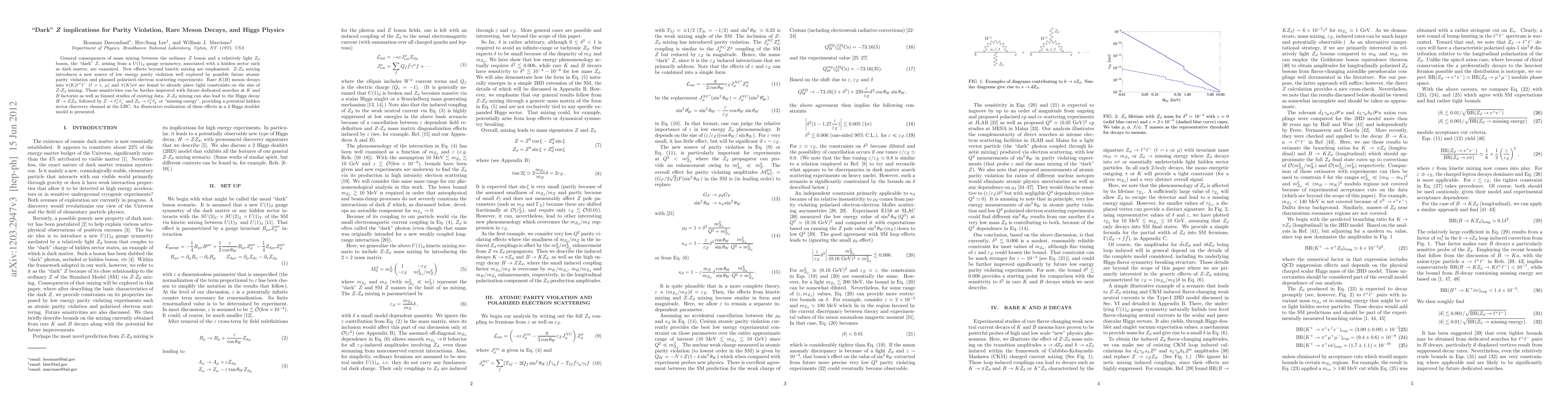 General consequences of mass mixing between the ordinary Z boson and a relatively light Z_d boson, the "dark" Z, arising from a U(1)_d gauge symmetry, associated with a hidden sector such as dark matter, are examined. New effects beyond kinetic mixing are emphasized. Z-Z_d mixing introduces a new source of low energy parity violation well explored by possible future atomic parity violation and planned polarized electron scattering experiments. Rare K (B) meson decays into pi (K) l^+ l^- (l = e, mu) and pi (K) nu anti-nu are found to already place tight constraints on the size of Z-Z_d mixing. Those sensitivities can be further improved with future dedicated searches at K and B factories as well as binned studies of existing data. Z-Z_d mixing can also lead to the Higgs decay H -> Z Z_d, followed by Z -> l_1^+ l_1^- and Z_d -> l_2^+ l_2^- or "missing energy", providing a potential hidden sector discovery channel at the LHC. An illustrative realization of these effects in a 2 Higgs doublet model is presented.