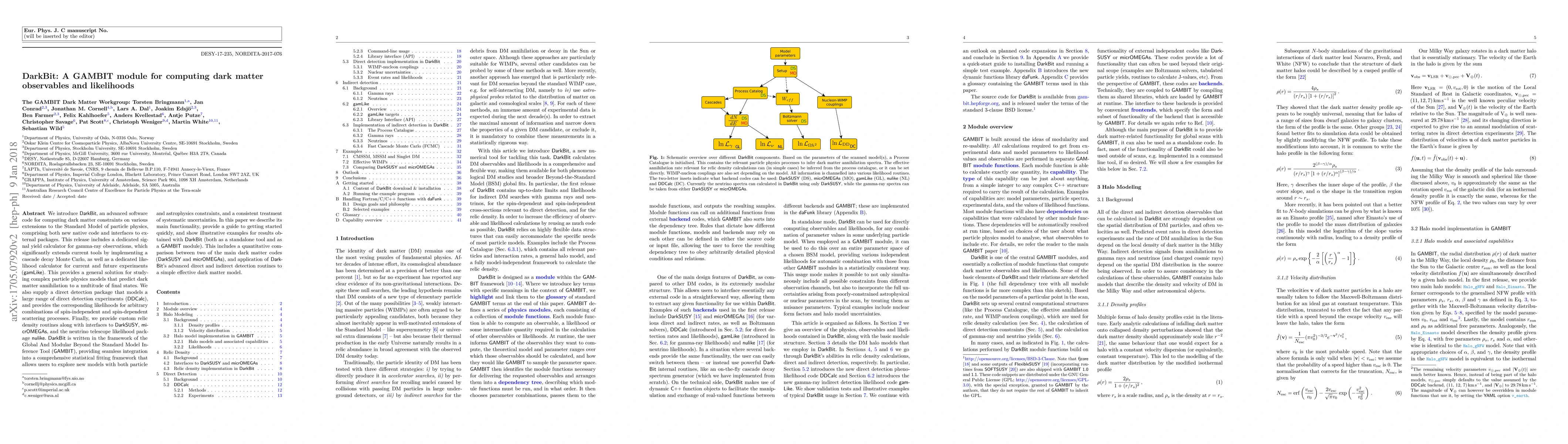 DarkBit is a GAMBIT module designed to compute dark matter constraints and likelihoods for various extensions to the Standard Model, featuring new native code and interfaces to external packages. It includes tools for gamma-ray observations, likelihood calculations, and direct detection experiments, along with interfaces for relic density and systematic uncertainties.