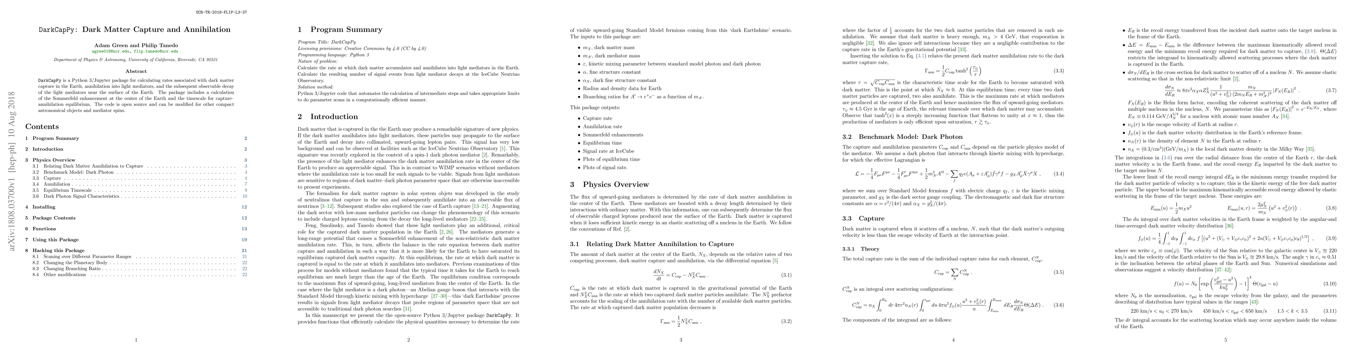 DarkCapPy is a Python 3/Jupyter package for calculating rates associated with dark matter capture in the Earth, annihilation into light mediators, and the subsequent observable decay of the light mediators near the surface of the Earth. The package includes a calculation of the Sommerfeld enhancement at the center of the Earth and the timescale for capture--annihilation equilibrium. The code is open source and can be modified for other compact astronomical objects and mediator spins.