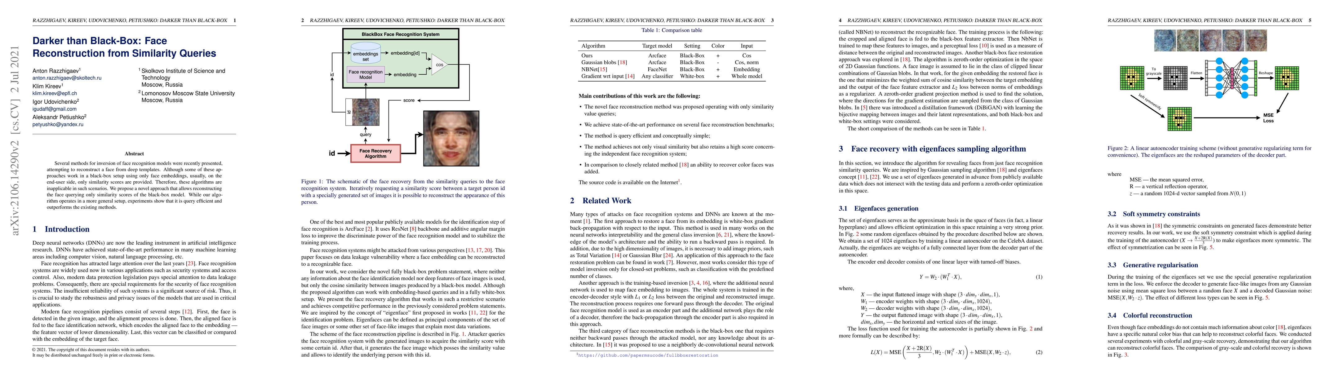 This paper proposes a novel method for reconstructing faces from black-box models using only similarity scores, addressing the limitations of existing inversion techniques that require face embeddings. The new algorithm is both query efficient and outperforms current methods in face reconstruction.