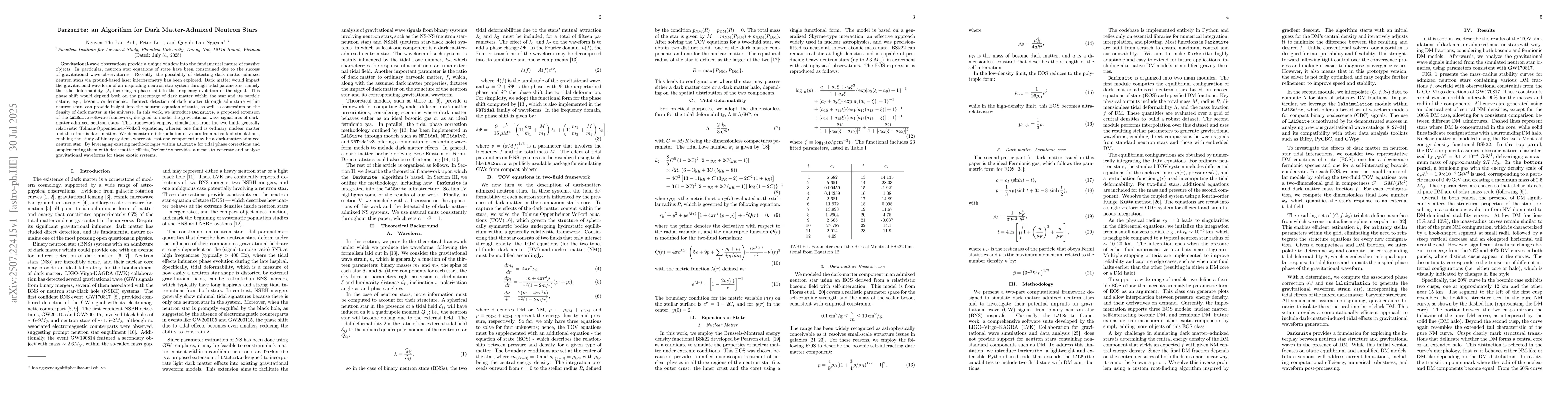 Darksuite's novelty lies in its comprehensive approach to integrating dark matter effects into GW modeling, offering a flexible and extensible Python-based code that can simulate a range of dark matter models and neutron star equations of state, thereby providing a robust tool for exploring the interplay between neutron star structure and GW signals in the presence of dark matter.