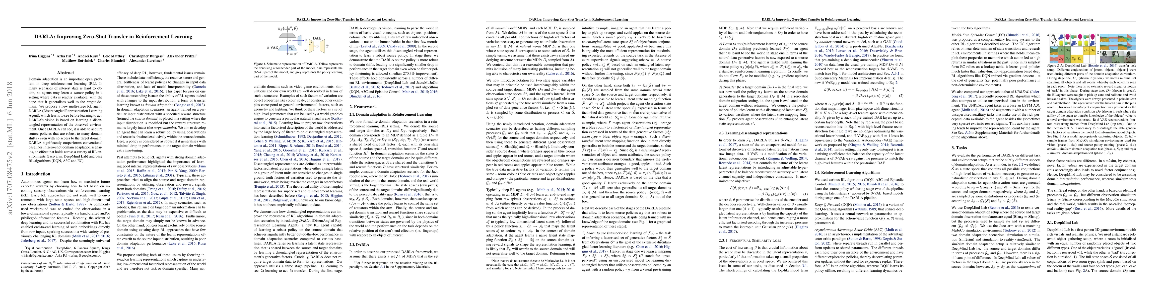 DARLA improves zero-shot transfer in reinforcement learning by learning a disentangled representation of the environment before acting, outperforming conventional baselines across various environments and RL algorithms.