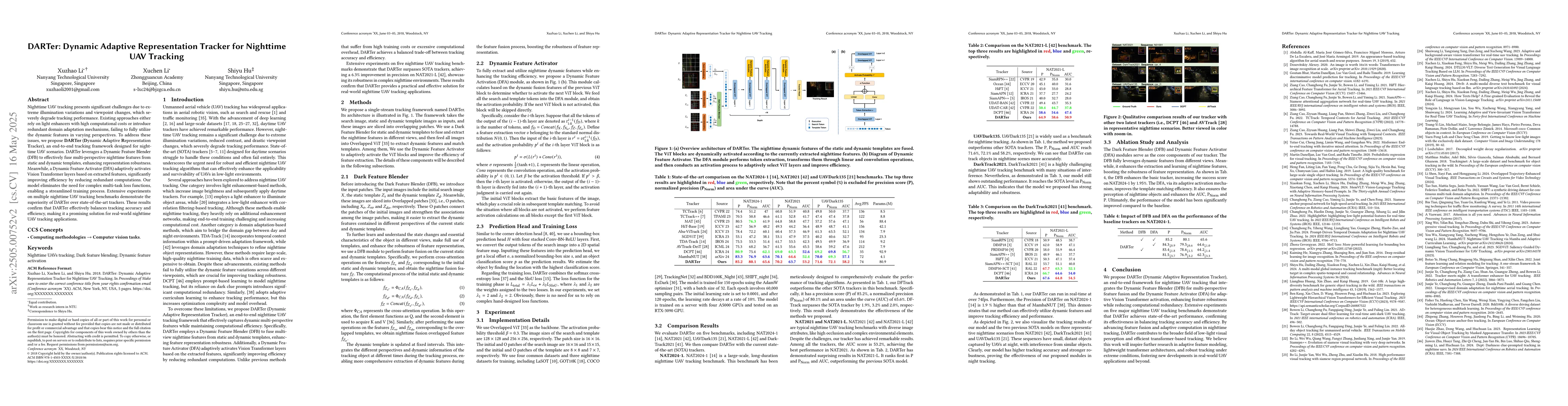 DARTer is a nighttime UAV tracking framework that balances accuracy and efficiency by effectively fusing features from static and dynamic templates and adaptively activating Vision Transformer layers.