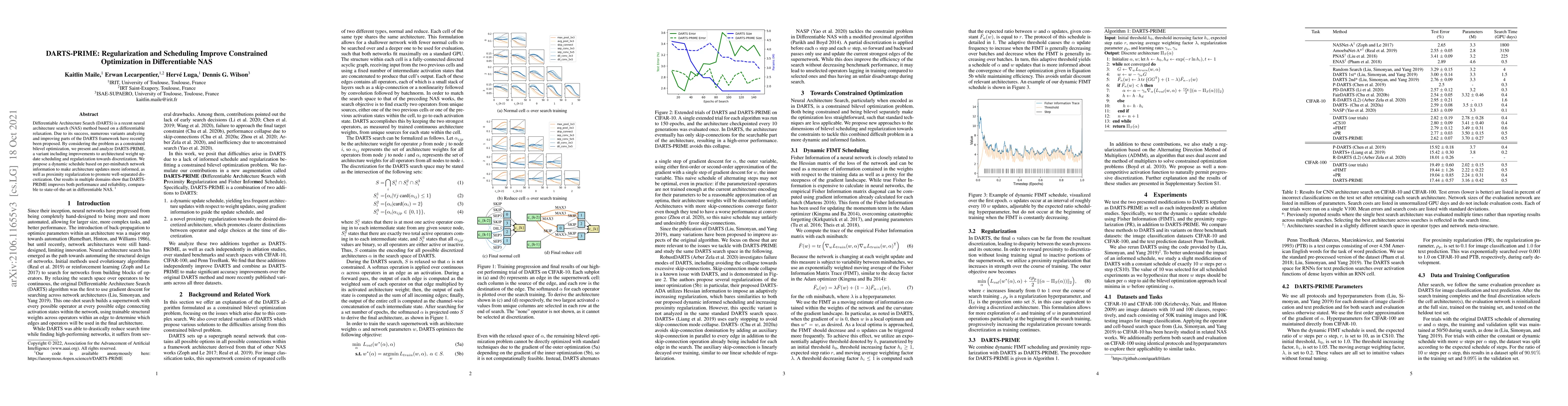 DARTS-PRIME enhances Differentiable Architecture Search (DARTS) by introducing improved scheduling and regularization techniques for better constrained optimization in neural architecture search. The method employs a dynamic update schedule and proximity regularization, leading to superior performance and reliability across various domains.