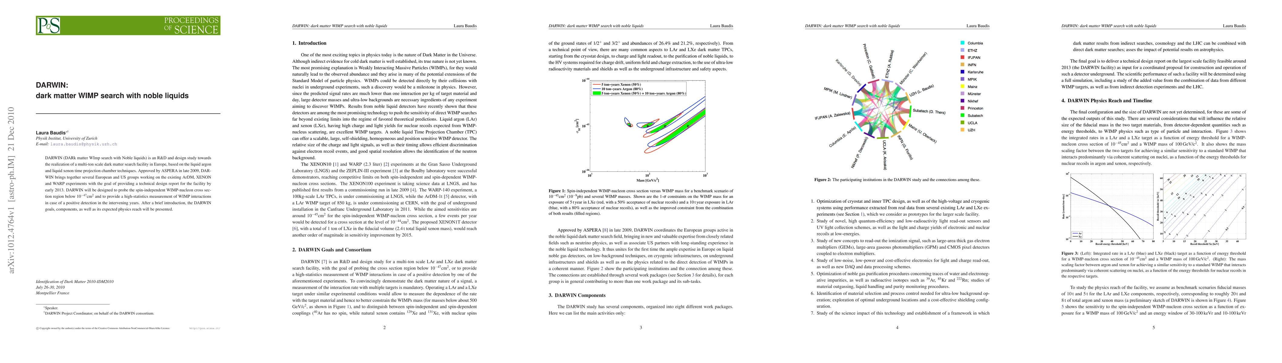 DARWIN (DARk matter WImp search with Noble liquids) is an R&D and design study towards the realization of a multi-ton scale dark matter search facility in Europe, based on the liquid argon and liquid xenon time projection chamber techniques. Approved by ASPERA in late 2009, DARWIN brings together several European and US groups working on the existing ArDM, XENON and WARP experiments with the goal of providing a technical design report for the facility by early 2013. DARWIN will be designed to probe the spin-independent WIMP-nucleon cross section region below 10-47cm^2 and to provide a high-statistics measurement of WIMP interactions in case of a positive detection in the intervening years. After a brief introduction, the DARWIN goals, components, as well as its expected physics reach will be presented.