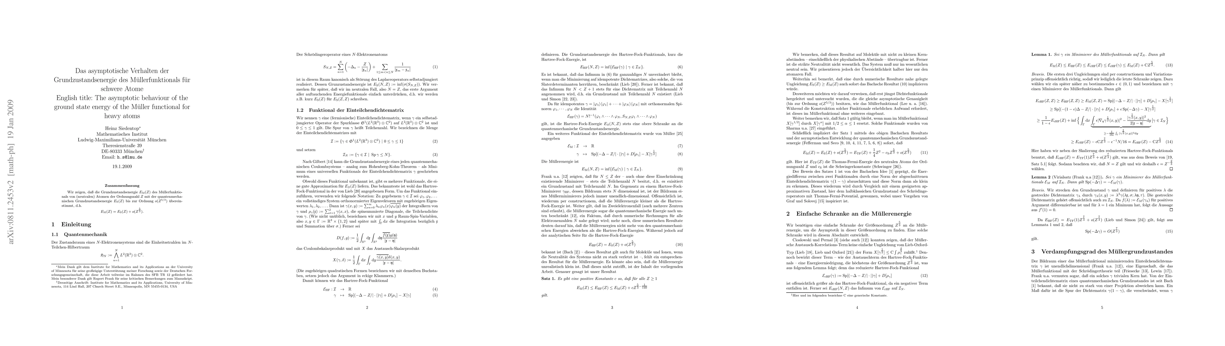 The ground state energy of the Mueller functional of large (neutral) atoms of atomic number Z agrees with the quantum mechanical ground state energy up to order o(Z to the 5/3). ----- Die Grundzustandsenergie des Muellerfunktionals von grossen (neutralen) Atomen der Ordnungszahl Z stimmt mit der quantenmechanischen Grundzustandsenergie bis zur Ordnung o(Z hoch 5/3) ueberein.