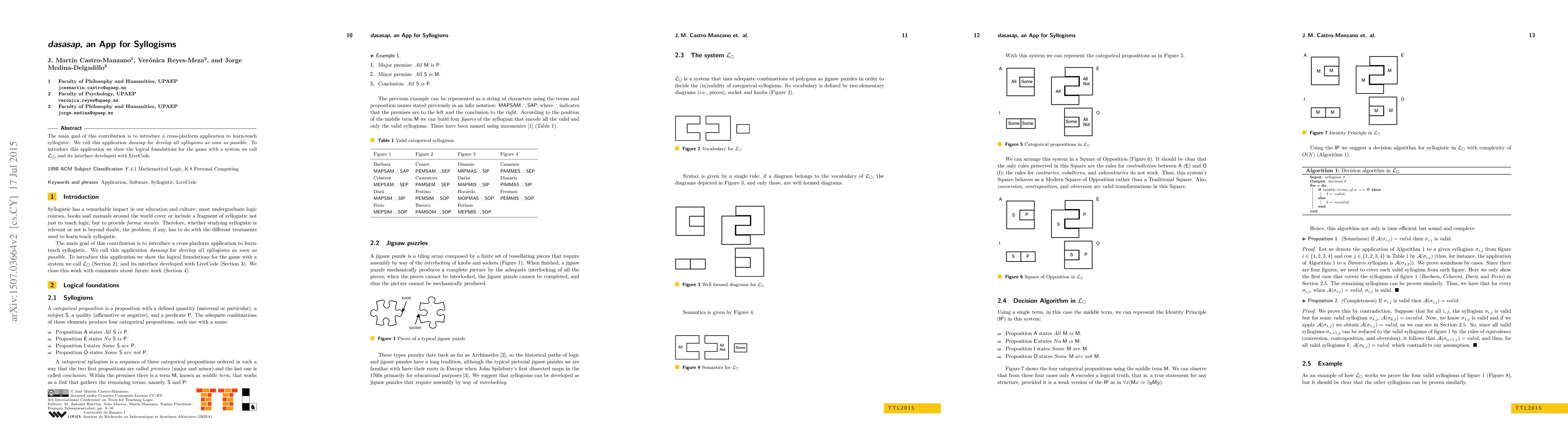 The paper introduces \textit{dasasap}, a cross-platform app for learning and teaching syllogisms, built using LiveCode, with a logical foundation in the system $\mathcal{L}_\square$. The aim is to expedite the understanding of syllogistic reasoning through an interactive game format.