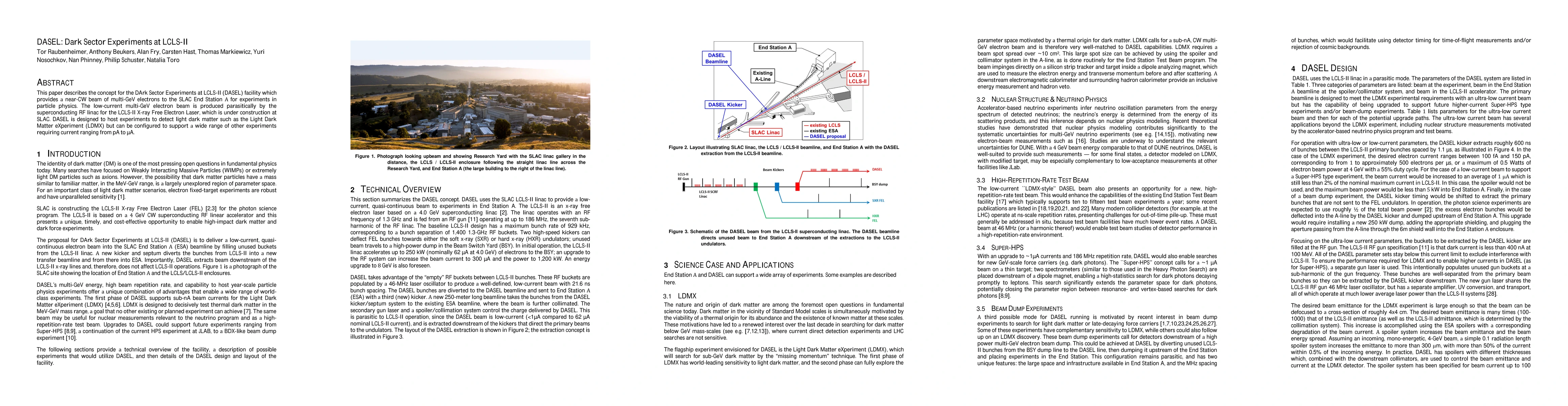 This paper describes the concept for the DArk Sector Experiments at LCLS-II (DASEL) facility which provides a near-CW beam of multi-GeV electrons to the SLAC End Station A for experiments in particle physics. The low-current multi-GeV electron beam is produced parasitically by the superconducting RF linac for the LCLS-II X-ray Free Electron Laser, which is under construction at SLAC. DASEL is designed to host experiments to detect light dark matter such as the Light Dark Matter eXperiment (LDMX) but can be configured to support a wide range of other experiments requiring current ranging from pico-amps to micro-amps.