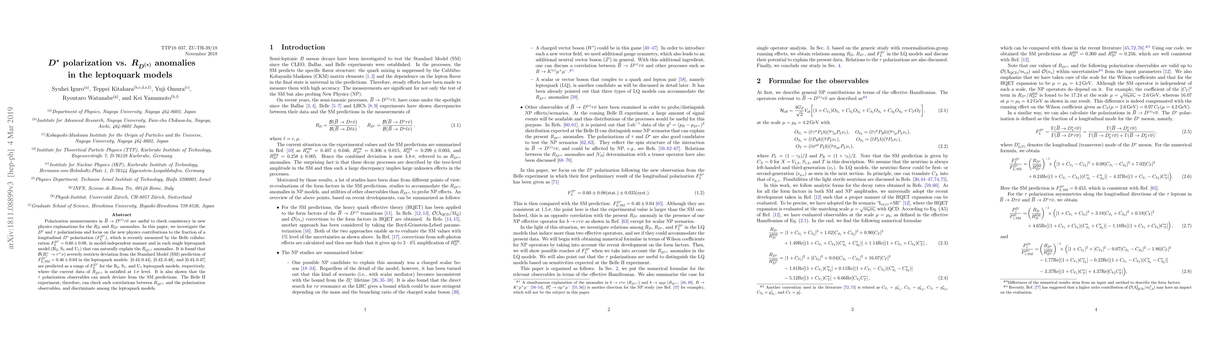 Polarization measurements in $\bar{B} \to D^{(\ast)} \tau \overline{\nu}$ are useful to check consistency in new physics explanations for the $R_{D}$ and $R_{D^{\ast}}$ anomalies. In this paper, we investigate the $D^{\ast}$ and $\tau$ polarizations and focus on the new physics contributions to the fraction of a longitudinal $D^{\ast}$ polarization ($F_{L}^{D^{\ast}}$), which is recently measured by the Belle collaboration $F_{L}^{D^{\ast}} = 0.60 \pm 0.09$, in model-independent manner and in each single leptoquark model (${\rm R}_2$, ${\rm S}_1$ and ${\rm U}_1$) that can naturally explain the $R_{D^{(\ast)}}$ anomalies. It is found that $\mathcal{B}(B_c^{+} \to \tau^{+} \nu)$ severely restricts deviation from the Standard Model (SM) prediction of $F_{L, \textrm{SM}}^{D^{\ast}} = 0.46 \pm 0.04$ in the leptoquark models: [0.43, 0.44], [0.42, 0.48], and [0.43, 0.47] are predicted as a range of $F_{L}^{D^{\ast}}$ for the ${\rm R}_2$, ${\rm S}_1$, and ${\rm U}_1$ leptoquark models, respectively, where the current data of $R_{D^{(\ast)}}$ is satisfied at $1\,\sigma$ level. It is also shown that the $\tau$ polarization observables can much deviate from the SM predictions. The Belle II experiment, therefore, can check such correlations between $R_{D^{(\ast)}}$ and the polarization observables, and discriminate among the leptoquark models.