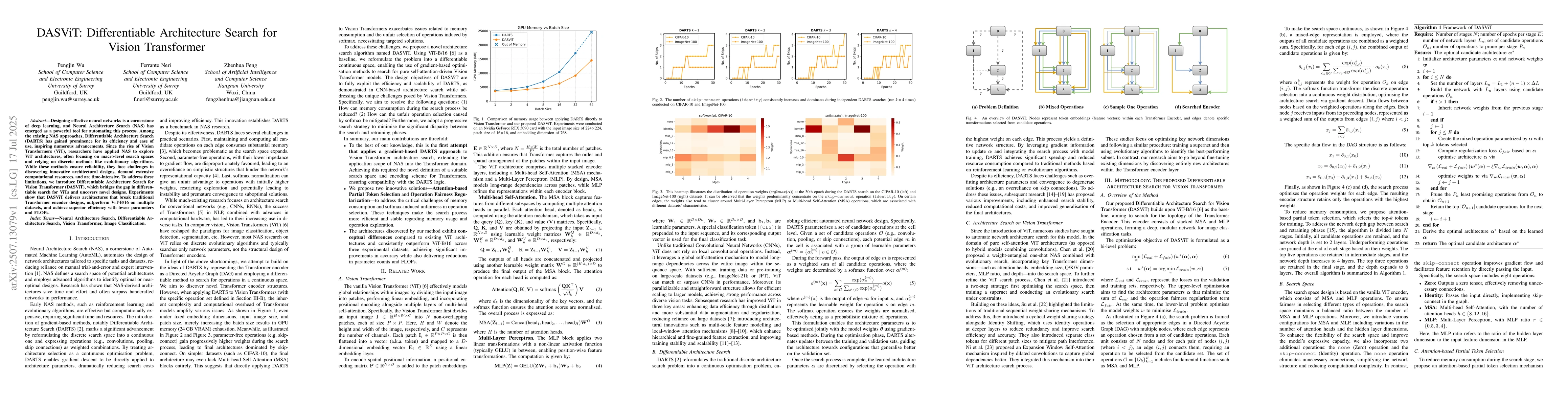 Designing effective neural networks is a cornerstone of deep learning, and Neural Architecture Search (NAS) has emerged as a powerful tool for automating this process. Among the existing NAS approaches, Differentiable Architecture Search (DARTS) has gained prominence for its efficiency and ease of use, inspiring numerous advancements. Since the rise of Vision Transformers (ViT), researchers have applied NAS to explore ViT architectures, often focusing on macro-level search spaces and relying on discrete methods like evolutionary algorithms. While these methods ensure reliability, they face challenges in discovering innovative architectural designs, demand extensive computational resources, and are time-intensive. To address these limitations, we introduce Differentiable Architecture Search for Vision Transformer (DASViT), which bridges the gap in differentiable search for ViTs and uncovers novel designs. Experiments show that DASViT delivers architectures that break traditional Transformer encoder designs, outperform ViT-B/16 on multiple datasets, and achieve superior efficiency with fewer parameters and FLOPs.