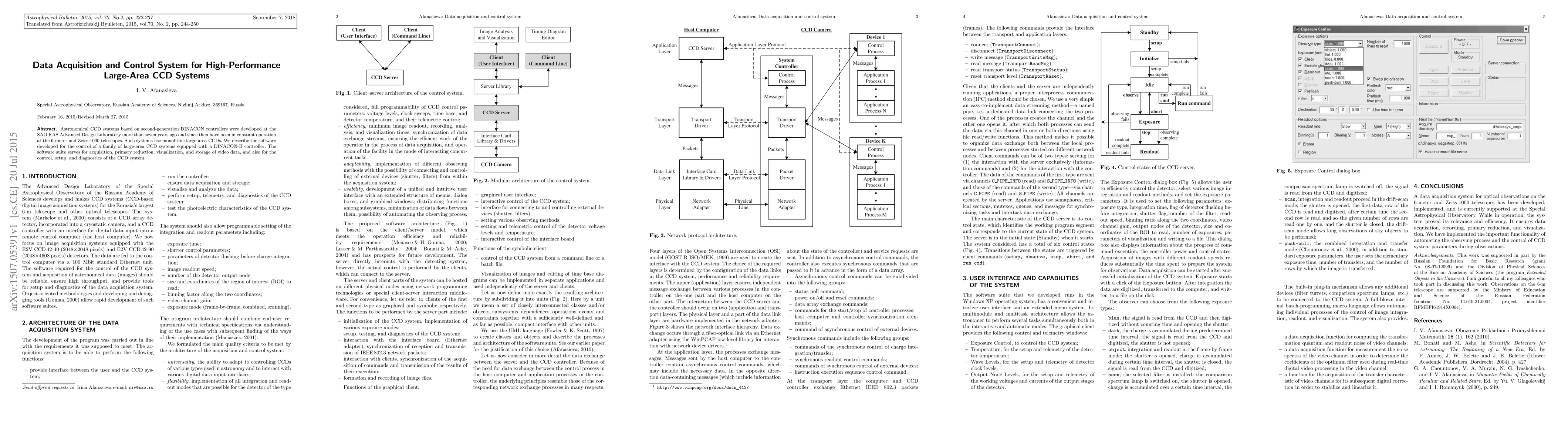 This paper details the software developed for managing large-area CCD systems with DINACON-II controllers, used in astronomical observations at the 6-meter and Zeiss-1000 telescopes. The software facilitates data acquisition, initial processing, visualization, storage, and system diagnostics.