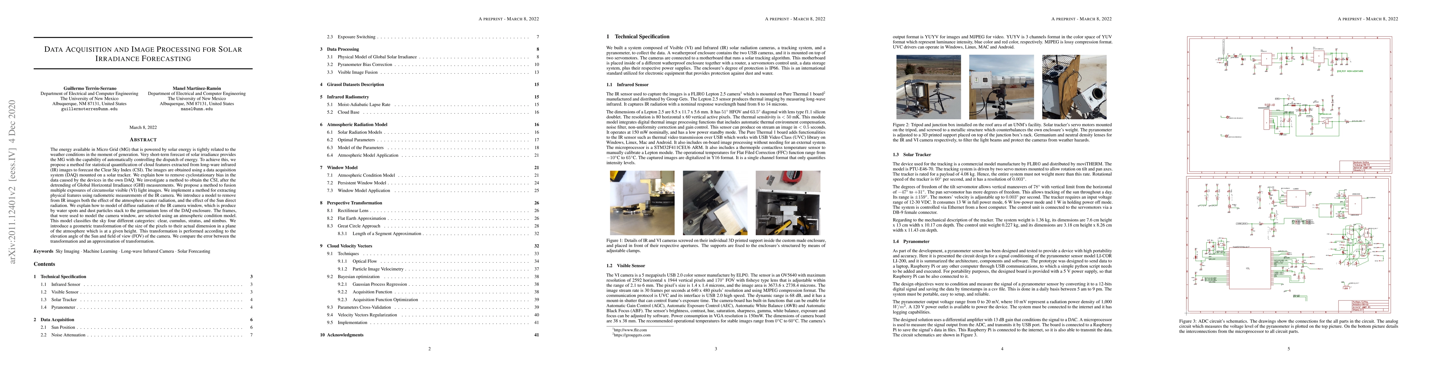 This research paper proposes a method to forecast solar irradiance using infrared images from a data acquisition system mounted on a solar tracker. It removes bias and atmospheric effects to extract physical features and predicts the Clear Sky Index, enabling smart control of energy dispatch in microgrids.