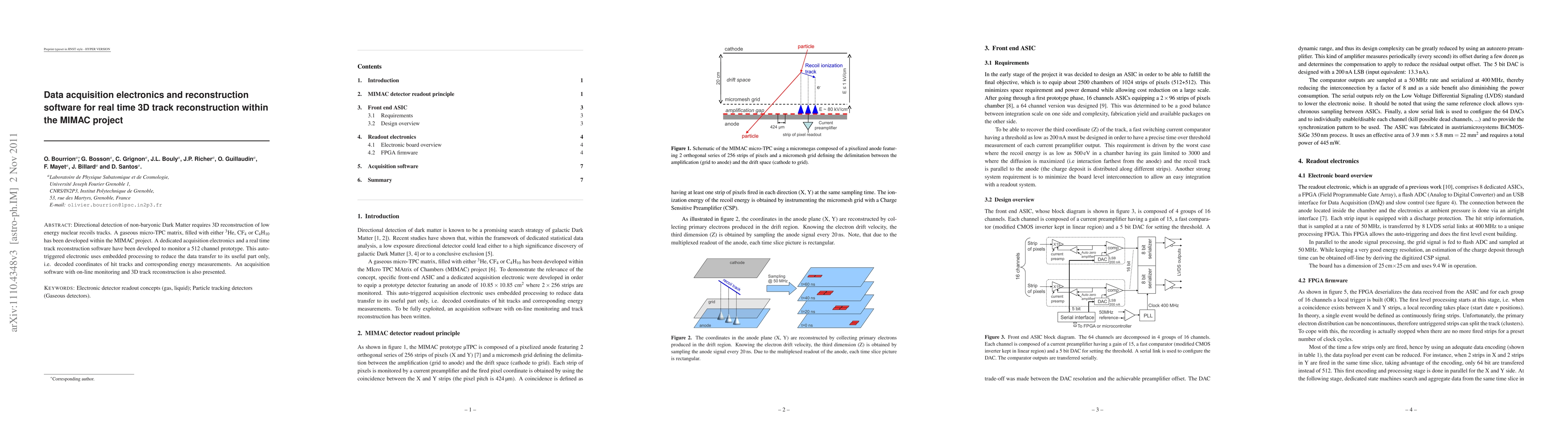 Directional detection of non-baryonic Dark Matter requires 3D reconstruction of low energy nuclear recoils tracks. A gaseous micro-TPC matrix, filled with either 3He, CF4 or C4H10 has been developed within the MIMAC project. A dedicated acquisition electronics and a real time track reconstruction software have been developed to monitor a 512 channel prototype. This autotriggered electronic uses embedded processing to reduce the data transfer to its useful part only, i.e. decoded coordinates of hit tracks and corresponding energy measurements. An acquisition software with on-line monitoring and 3D track reconstruction is also presented.