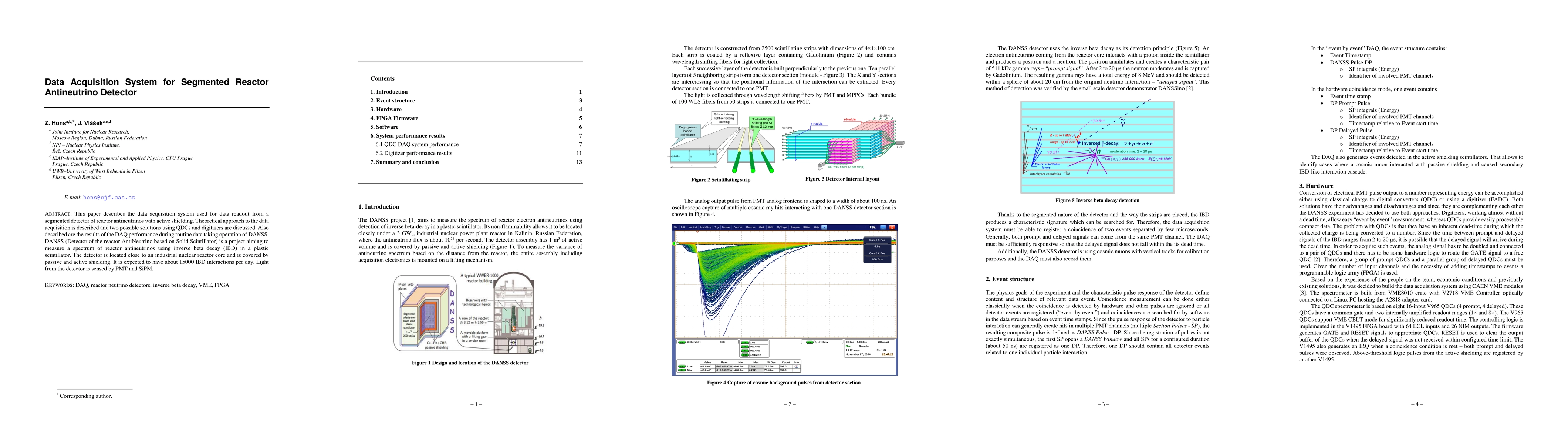 This paper presents the data acquisition system for the DANSS segmented reactor antineutrino detector, discussing theoretical approaches and performance results using QDCs and digitizers. The DANSS project aims to measure reactor antineutrinos via inverse beta decay in plastic scintillator, with expected daily interactions of around 15,000.