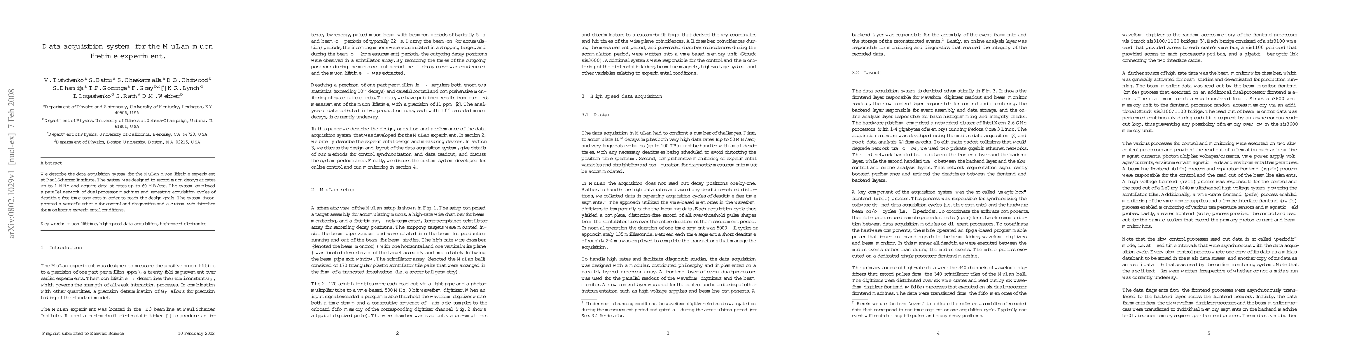 The MuLan experiment's data acquisition system records muon decays at rates up to 1 MHz and handles data at rates up to 60 MB/sec using a parallel network of dual-processor machines and a custom web interface for monitoring.