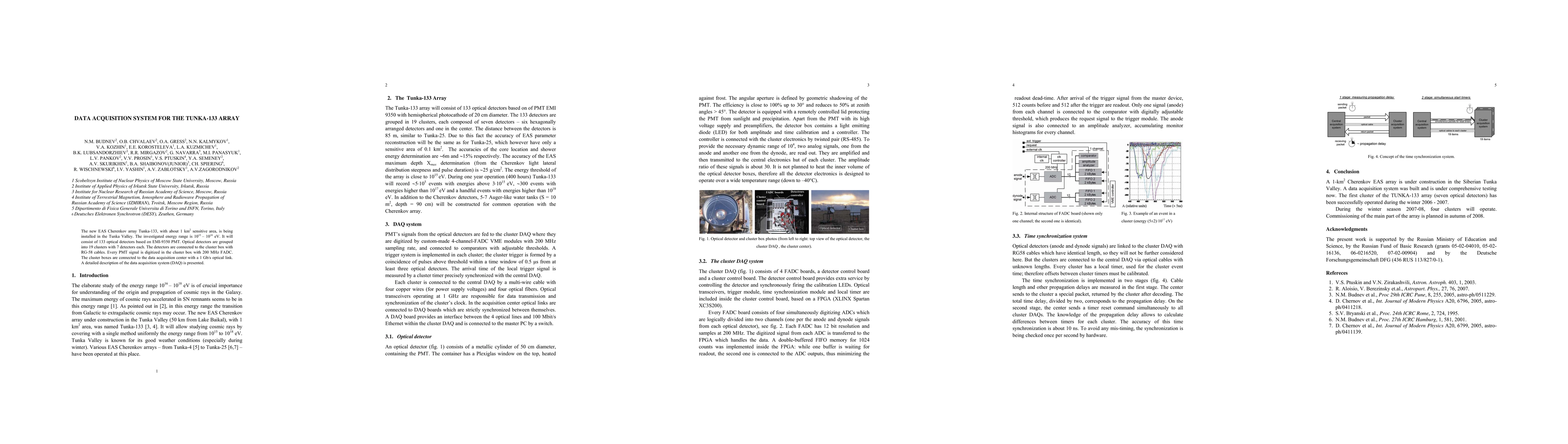 The new EAS Cherenkov array TUNKA-133, with about 1 km**2 sensitive area, is being installed in the Tunka Valley. The investigated energy range is 10**15-10**18 eV. It will consist of 133 optical detectors based on EMI9350 PMTs. Optical detectors are grouped into 19 clusters with 7 detectors each. The detectors are connected to the cluster box with RG-58 cables. Every PMT signal is digitized in the cluster box with 200 MHz FADC. The cluster boxes are connected to the data acquisition center with a 1 Gb/s optical link. A detailed description of the data acquisition system (DAQ) is presented.