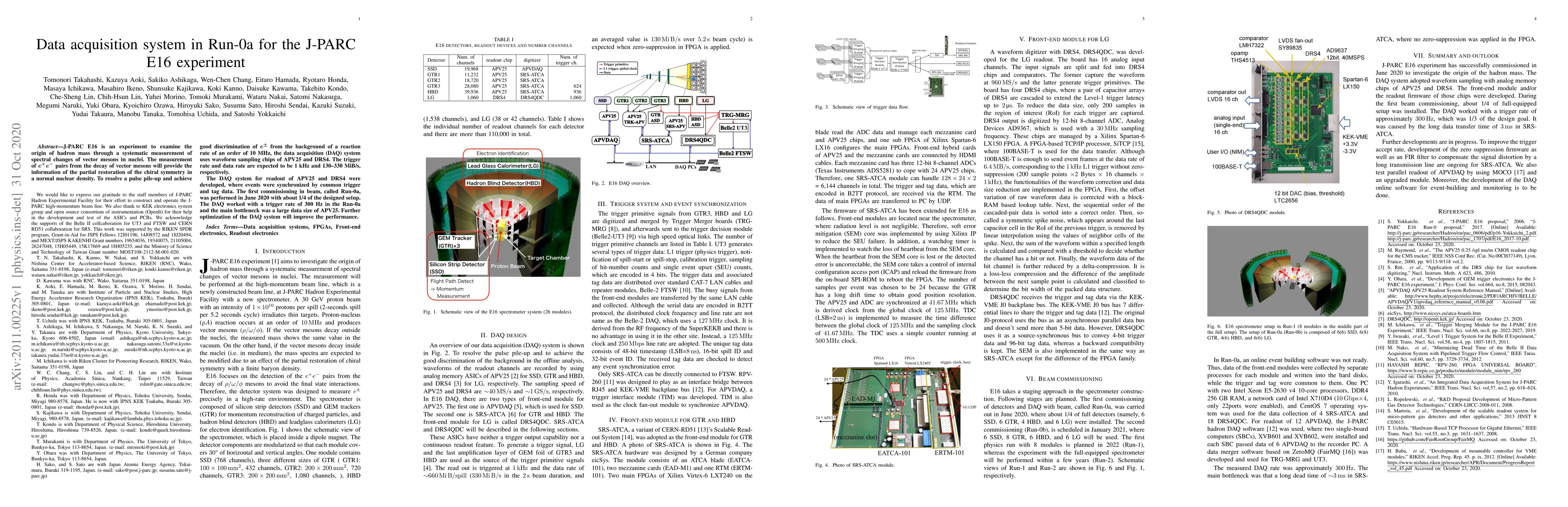 Researchers developed a data acquisition system for the J-PARC E16 experiment to analyze hadron mass origin through vector meson decay, achieving 1 kHz trigger rate and 130-330 MiB/s data rate.