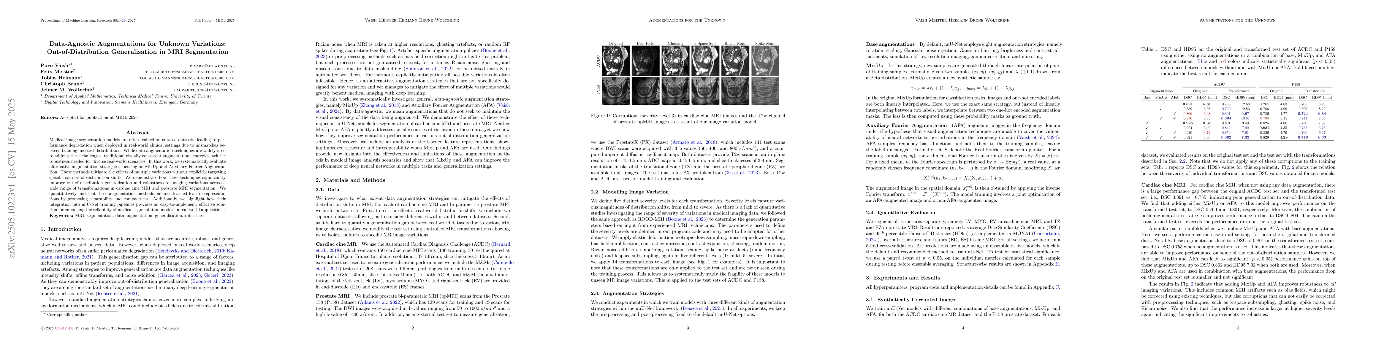 The paper demonstrates the effectiveness of MixUp and Auxiliary Fourier Augmentation in improving out-of-distribution generalization for MRI segmentation, presenting an easy-to-implement solution for nnU-Net training pipelines.