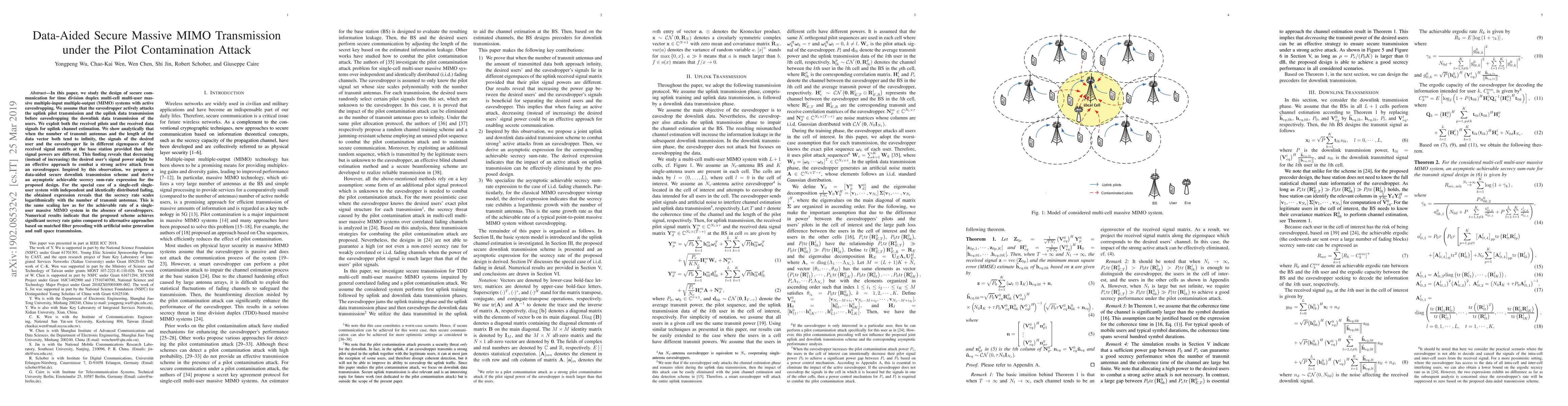 This paper investigates secure communication in massive MIMO systems under pilot contamination attacks, proposing a data-aided secure transmission scheme that leverages both pilot and data signals for channel estimation. The study finds that decreasing the desired user's signal power can effectively combat strong attacks, leading to significant secrecy rate gains over alternative methods.