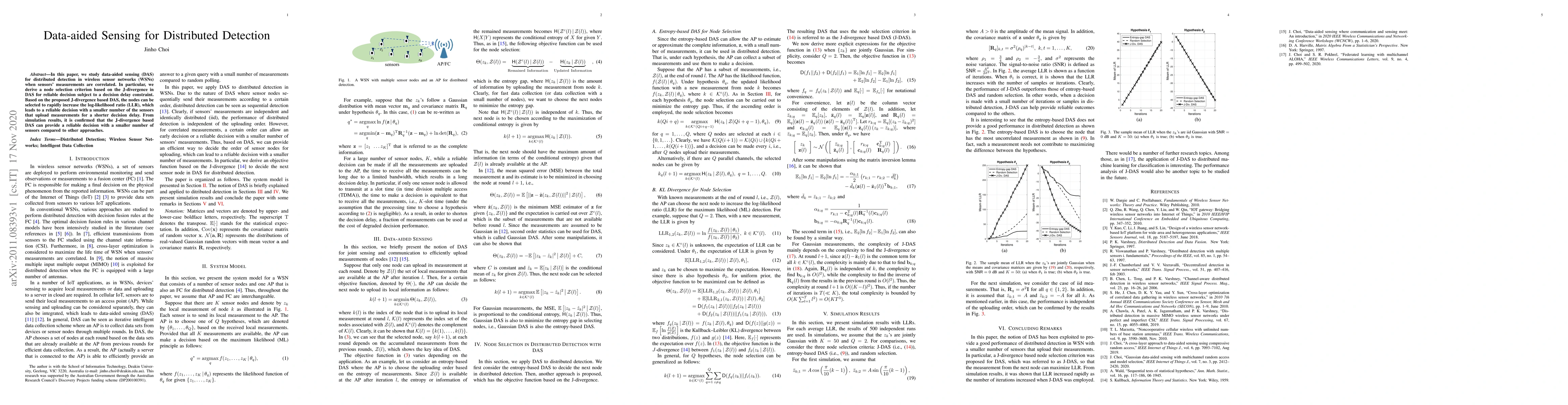 A new method for distributed sensing in wireless sensor networks uses a node selection criterion based on the J-divergence to make reliable decisions with fewer sensors, reducing decision delay.