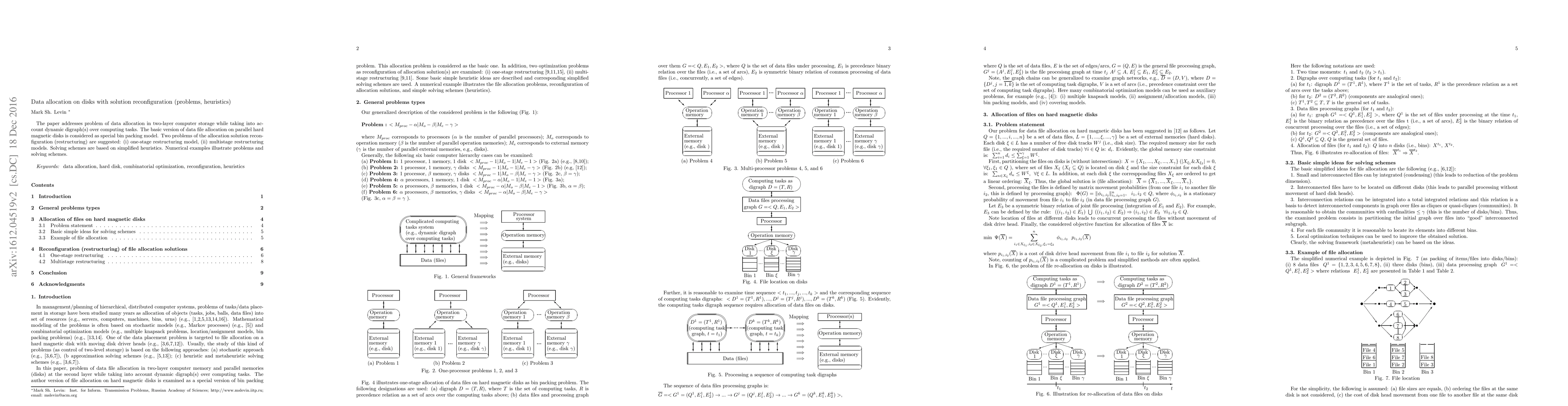 A two-layer computer storage system with several disks is studied, and models and simplified heuristics are described.