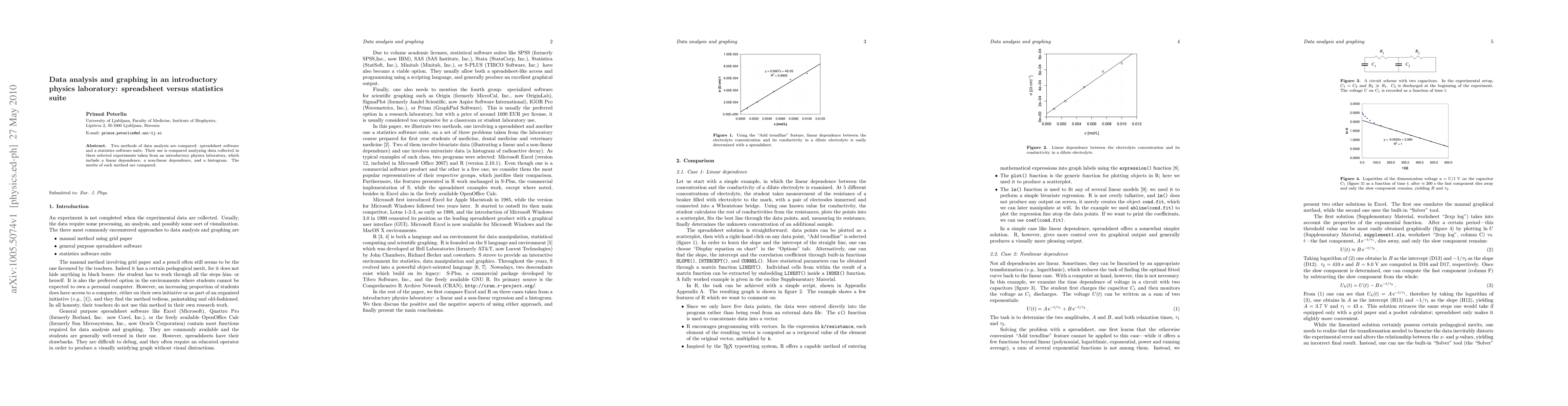 This paper compares the use of spreadsheet software and statistics suite software for data analysis in introductory physics labs, focusing on three experiments: linear dependence, non-linear dependence, and histograms, to evaluate the merits of each method.