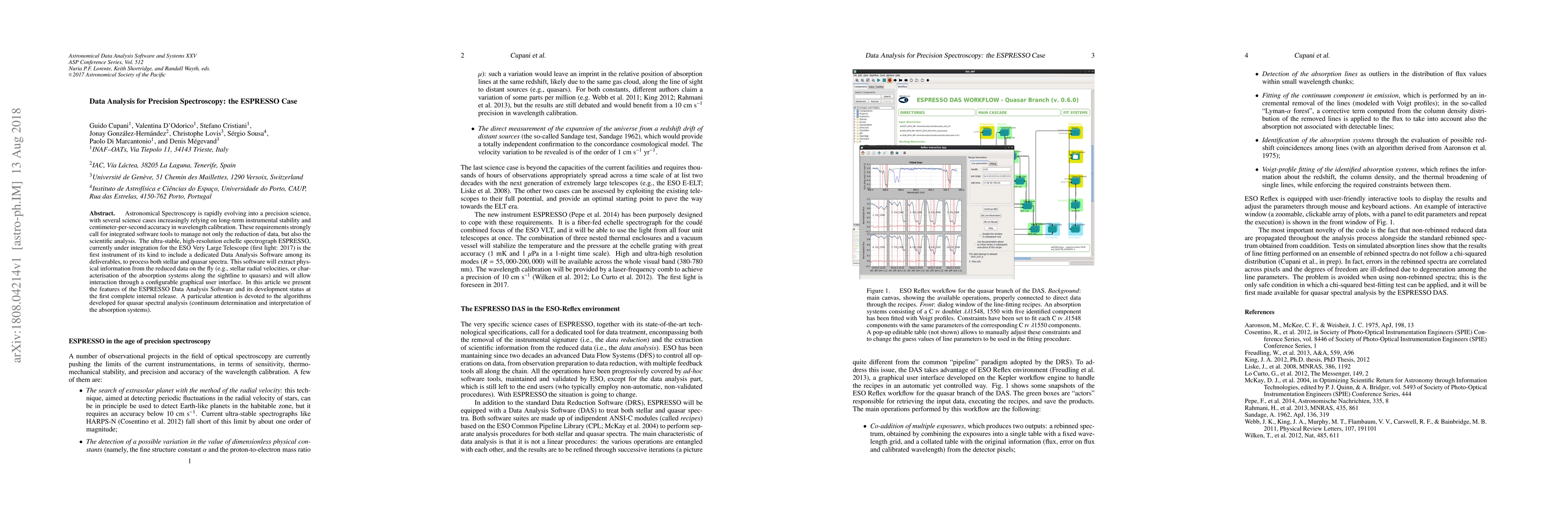 ESPRESSO is a high-resolution spectrograph for the ESO VLT, designed to directly extract science information from observations. Its Data Analysis Software (DAS) aims to overcome existing software limitations with new algorithms, iteration modes, and full interactivity for analyzing stellar and quasar spectra.