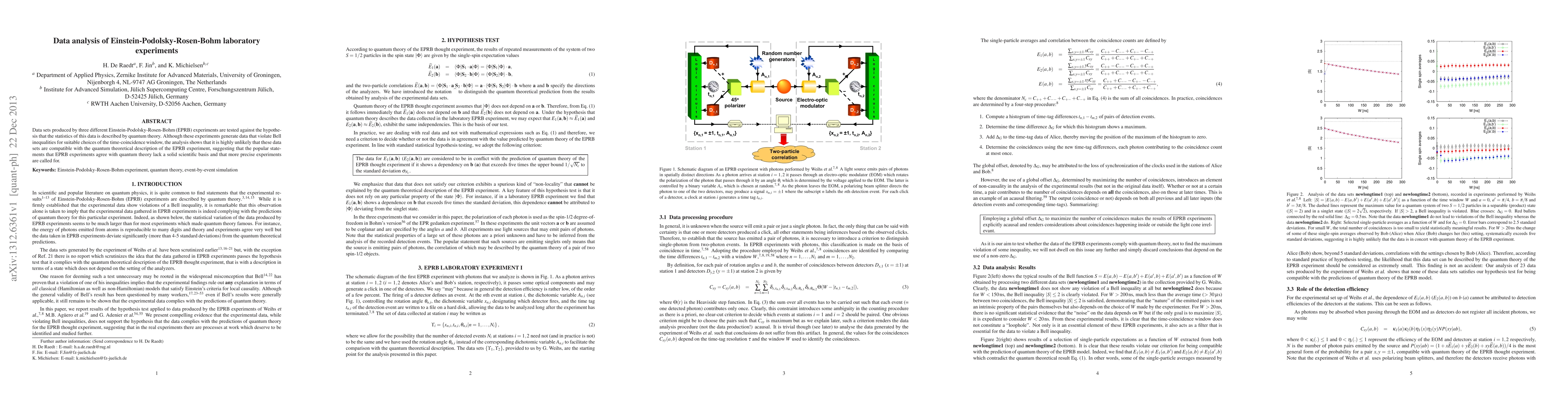 Data sets produced by three different Einstein-Podolsky-Rosen-Bohm (EPRB) experiments are tested against the hypothesis that the statistics of this data is described by quantum theory. Although these experiments generate data that violate Bell inequalities for suitable choices of the time-coincidence window, the analysis shows that it is highly unlikely that these data sets are compatible with the quantum theoretical description of the EPRB experiment, suggesting that the popular statements that EPRB experiments agree with quantum theory lack a solid scientific basis and that more precise experiments are called for.