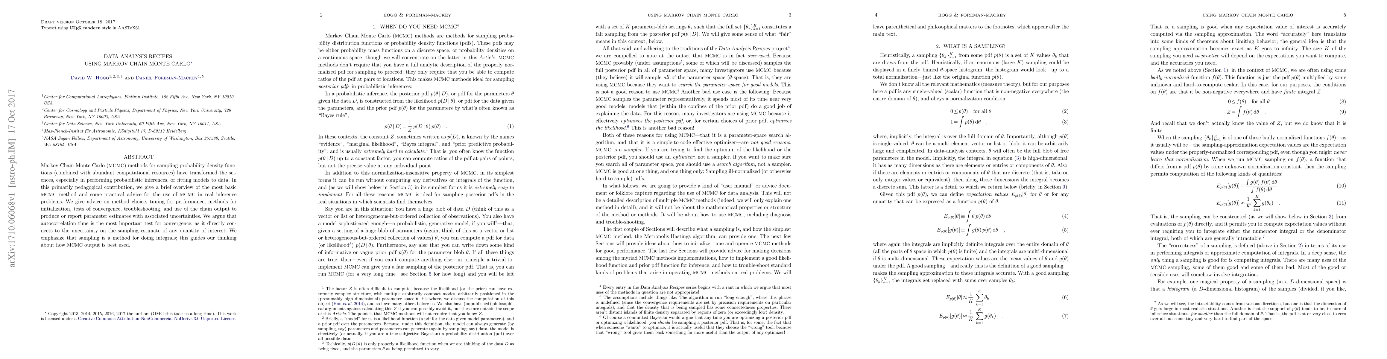 This paper provides a pedagogical guide on using Markov Chain Monte Carlo (MCMC) methods for performing probabilistic inferences and fitting models to data. It emphasizes the importance of autocorrelation time as a test for convergence and offers practical advice for method choice, tuning, and interpreting MCMC output.
