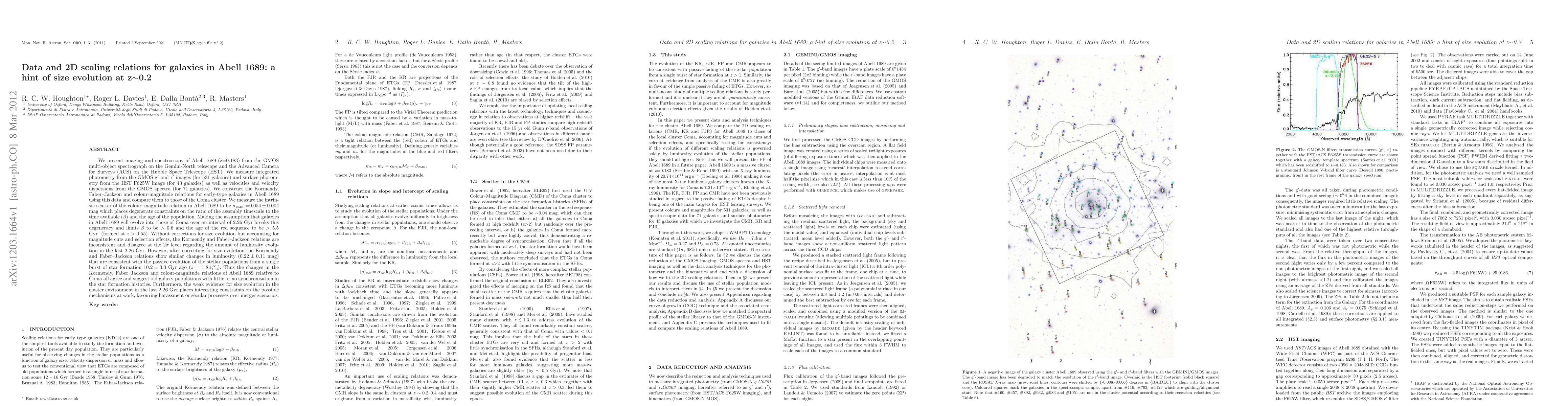 {abridged} We present imaging and spectroscopy of Abell 1689 (z=0.183) from GEMINI/GMOS-N and HST/ACS. We measure integrated photometry from the GMOS g' and r' images (for 531 galaxies) and surface photometry from the HST F625W image (for 43 galaxies) as well as velocities and velocity dispersions from the GMOS spectra (for 71 galaxies). We construct the Kormendy relation (KR), Faber-Jackson relation (FJR) and colour-magnitude relation (CMR) for early-type galaxies in Abell 1689 using this data and compare them to those of the Coma cluster. We measure the intrinsic scatter of the CMR in Abell 1689 to be 0.054 \pm 0.004 mag which places degenerate constraints on the ratio of the assembly timescale to the time available (beta) and the age of the population. Making the assumption that galaxies in Abell 1689 will evolve into those of Coma over an interval of 2.26 Gyr breaks this degeneracy and limits beta to be > 0.6 and the age of the red sequence to be > 5.5 Gyr (formed at z > 0.55). Without corrections for size evolution but accounting for magnitude cuts and selection effects, the KR & FJR are inconsistent and disagree at the 2 sigma level regarding the amount of luminosity evolution in the last 2.26 Gyr. However, after correcting for size evolution the KR & FJR show similar changes in luminosity (0.22 \pm 0.11 mag) that are consistent with the passive evolution of the stellar populations from a single burst of star formation 10.2 \pm 3.3 Gyr ago (z = 1.8+inf-0.9). Thus the changes in the KR, FJR & CMR of Abell 1689 relative to Coma all agree and suggest old galaxy populations with little or no synchronisation in the star formation histories. Furthermore, the weak evidence for size evolution in the cluster environment in the last 2.26 Gyr places interesting constraints on the possible mechanisms at work, favouring harassment or secular processes over merger scenarios.