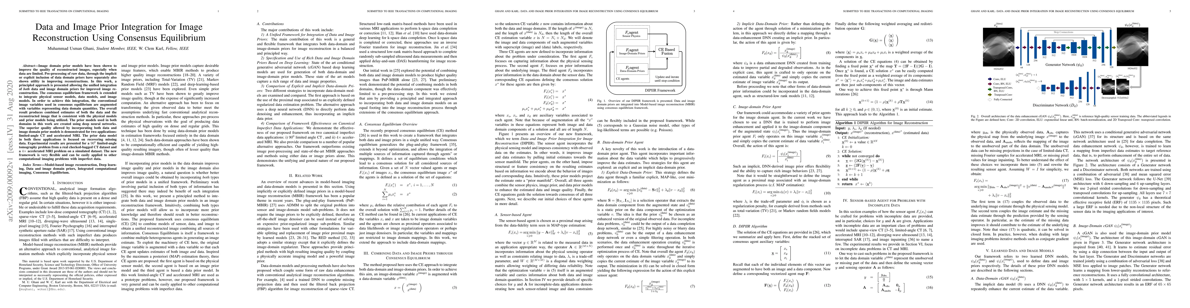 This paper presents a consensus equilibrium framework integrating both data and image domain priors for improved image reconstruction, using deep neural networks to create prior models. The method is demonstrated to enhance reconstruction quality in limited-angle CT and accelerated MRI, showing superior performance in recovering missing data.