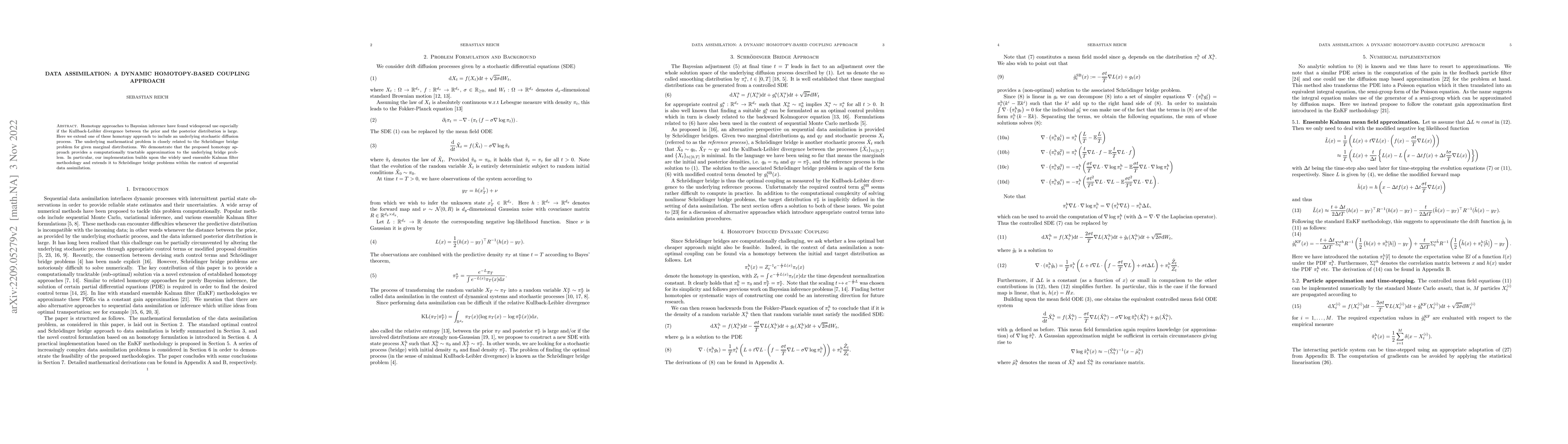 This paper proposes a dynamic homotopy-based coupling approach for data assimilation, extending a homotopy method to include stochastic diffusion processes. The method offers a computationally feasible approximation to the Schrödinger bridge problem, enhancing the ensemble Kalman filter for sequential data assimilation.