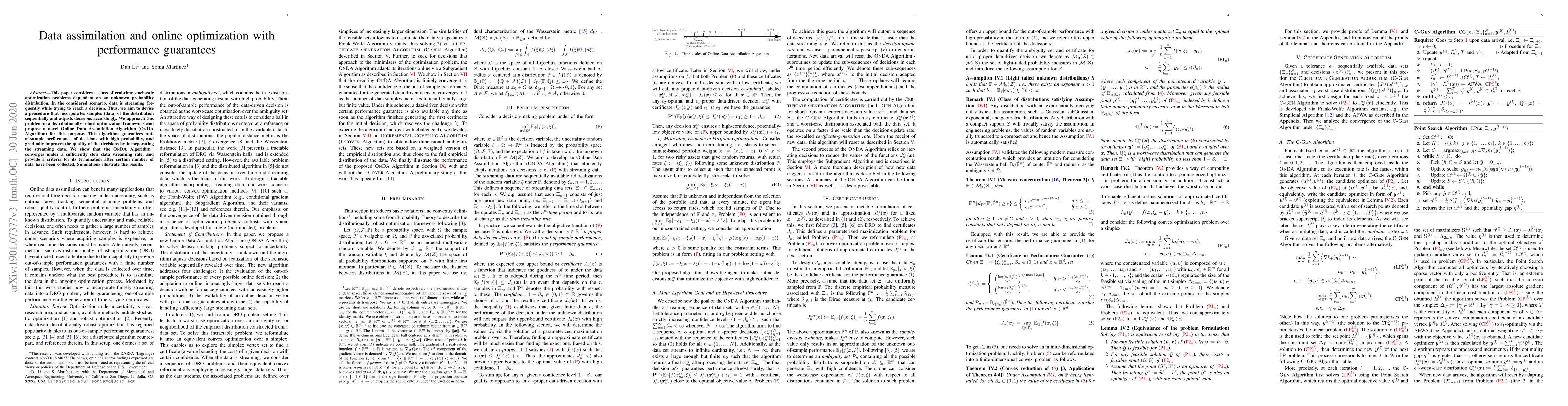 This paper considers a class of real-time stochastic optimization problems dependent on an unknown probability distribution. In the considered scenario, data is streaming frequently while trying to reach a decision. Thus, we aim to devise a procedure that incorporates samples (data) of the distribution sequentially and adjusts decisions accordingly. We approach this problem in a distributionally robust optimization framework and propose a novel Online Data Assimilation Algorithm (ONDA Algorithm) for this purpose. This algorithm guarantees out-of-sample performance of decisions with high probability, and gradually improves the quality of the decisions by incorporating the streaming data. We show that the ONDA Algorithm converges under a sufficiently slow data streaming rate, and provide a criteria for its termination after certain number of data have been collected. Simulations illustrate the results.