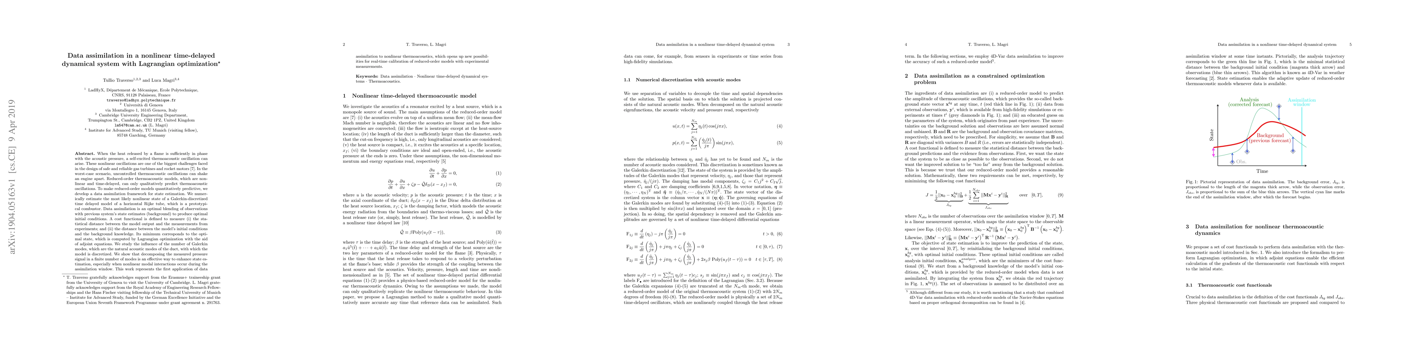 When the heat released by a flame is sufficiently in phase with the acoustic pressure, a self-excited thermoacoustic oscillation can arise. These nonlinear oscillations are one of the biggest challenges faced in the design of safe and reliable gas turbines and rocket motors. In the worst-case scenario, uncontrolled thermoacoustic oscillations can shake an engine apart. Reduced-order thermoacoustic models, which are nonlinear and time-delayed, can only qualitatively predict thermoacoustic oscillations. To make reduced-order models quantitatively predictive, we develop a data assimilation framework for state estimation. We numerically estimate the most likely nonlinear state of a Galerkin-discretized time delayed model of a horizontal Rijke tube, which is a prototypical combustor. Data assimilation is an optimal blending of observations with previous state estimates (background) to produce optimal initial conditions. A cost functional is defined to measure the statistical distance between the model output and the measurements from experiments; and the distance between the initial conditions and the background knowledge. Its minimum corresponds to the optimal state, which is computed by Lagrangian optimization with the aid of adjoint equations. We study the influence of the number of Galerkin modes, which are the natural acoustic modes of the duct, with which the model is discretized. We show that decomposing the measured pressure signal in a finite number of modes is an effective way to enhance state estimation, especially when nonlinear modal interactions occur during the assimilation window. This work represents the first application of data assimilation to nonlinear thermoacoustics, which opens up new possibilities for real-time calibration of reduced-order models with experimental measurements.