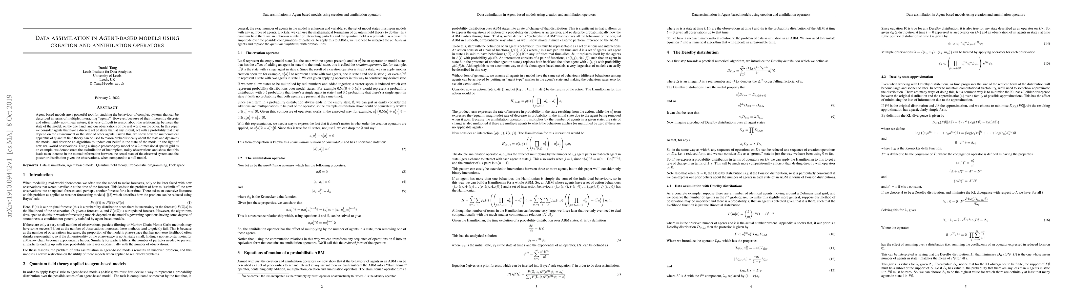The paper presents a novel method for data assimilation in agent-based models using creation and annihilation operators from quantum field theory, along with an algorithm for updating beliefs based on real-world observations.