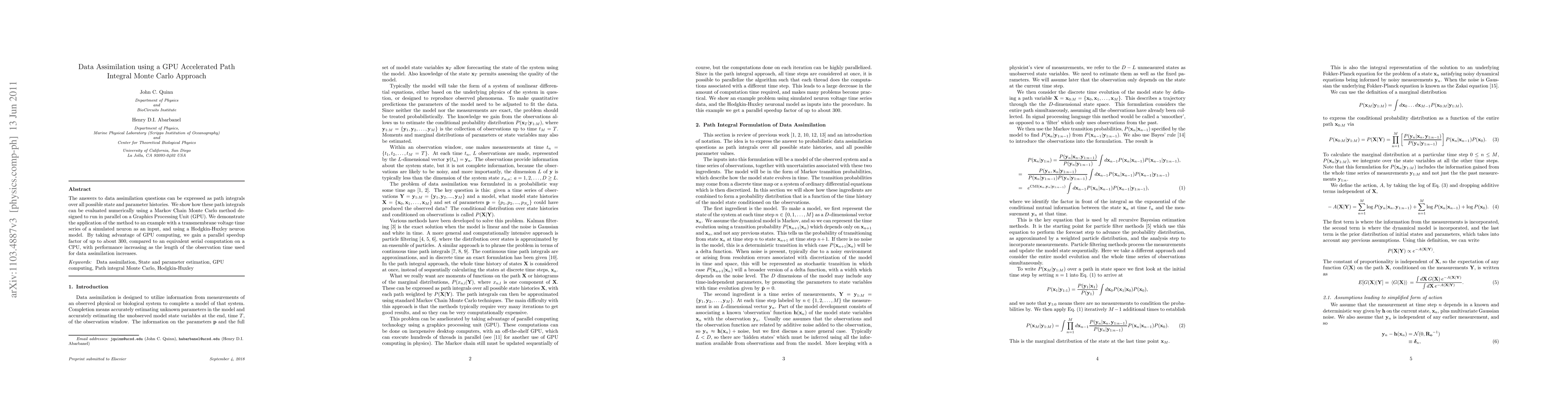 Researchers developed a method to accelerate data assimilation using GPU-accelerated Monte Carlo simulations, achieving up to 300x speedup over CPU computations.
