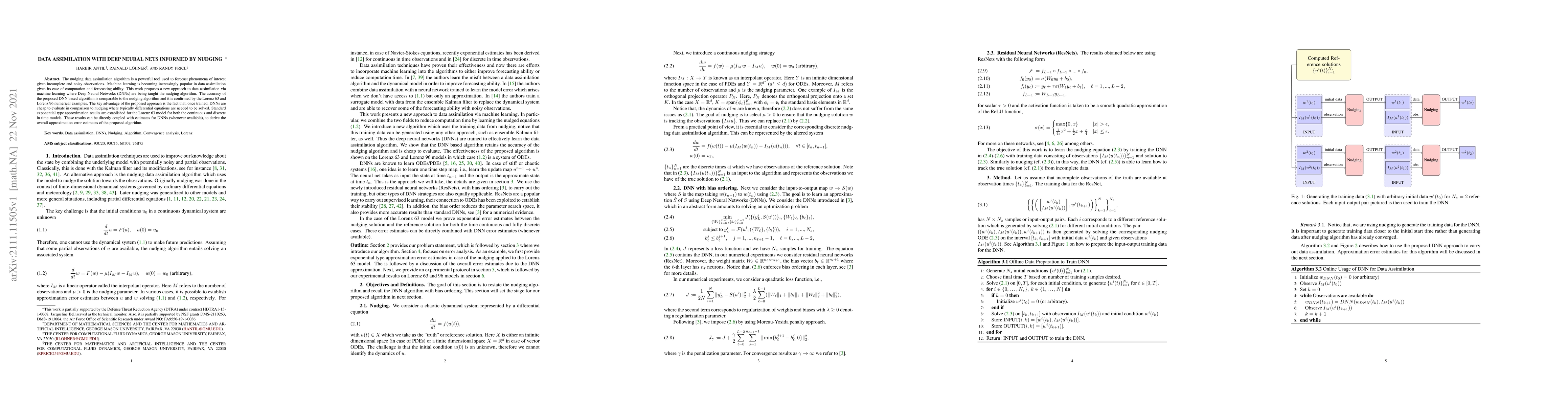 This paper proposes a novel data assimilation method using Deep Neural Networks (DNNs) informed by the nudging algorithm, demonstrating comparable accuracy to traditional nudging methods in Lorenz models. The key advantage lies in DNNs' cost-effectiveness post-training, as they require fewer computational resources compared to the differential equations solved in nudging.