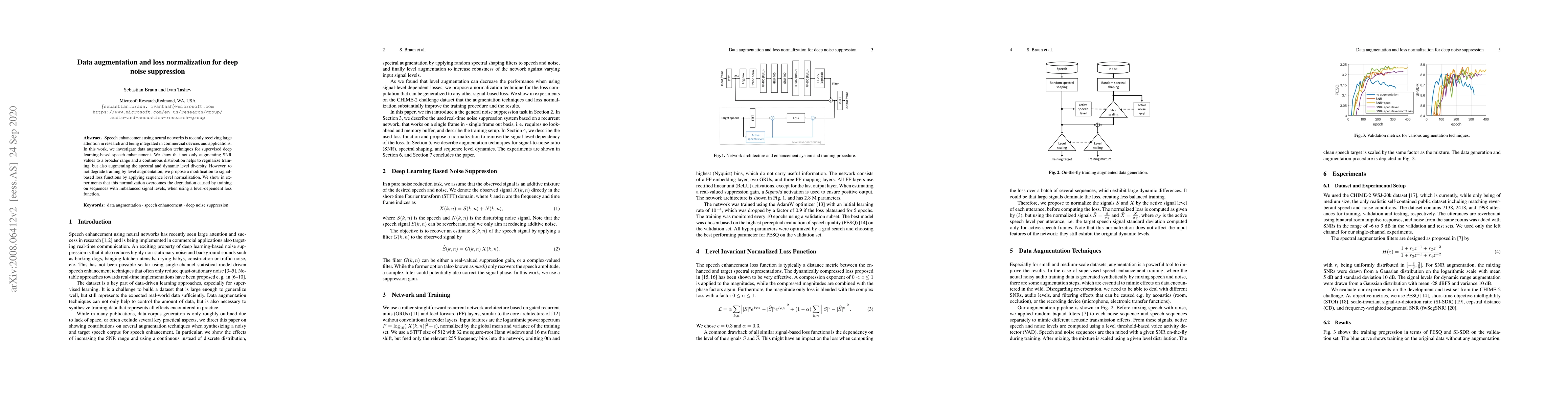 This paper explores data augmentation and loss normalization techniques to enhance deep learning-based speech enhancement. It demonstrates that augmenting spectral and dynamic diversity, along with a broader range of SNR values, improves training regularization, but proposes sequence level normalization to mitigate training degradation caused by imbalanced signal levels.