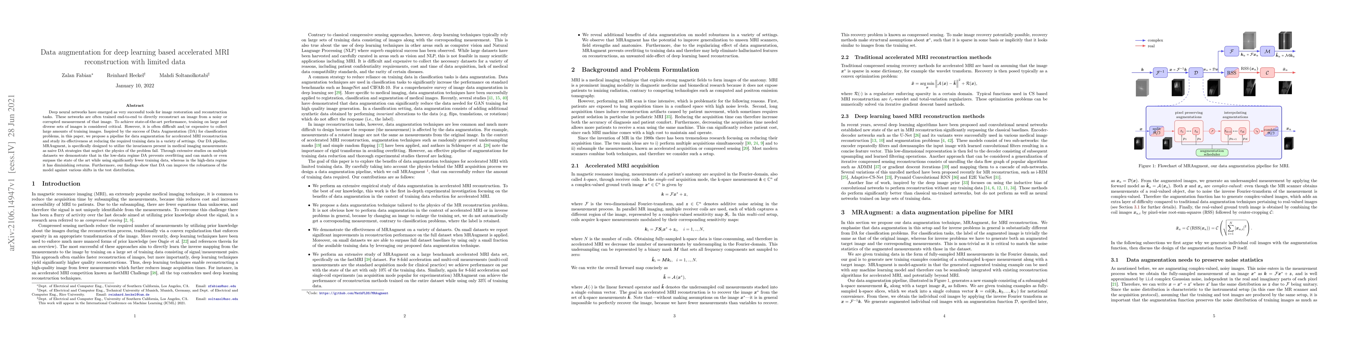 This paper proposes MRAugment, a data augmentation pipeline for accelerated MRI reconstruction using deep learning, designed to leverage the invariances in medical imaging. The study demonstrates that MRAugment effectively reduces the required training data, prevents overfitting, and enhances model robustness, especially in low-data scenarios.