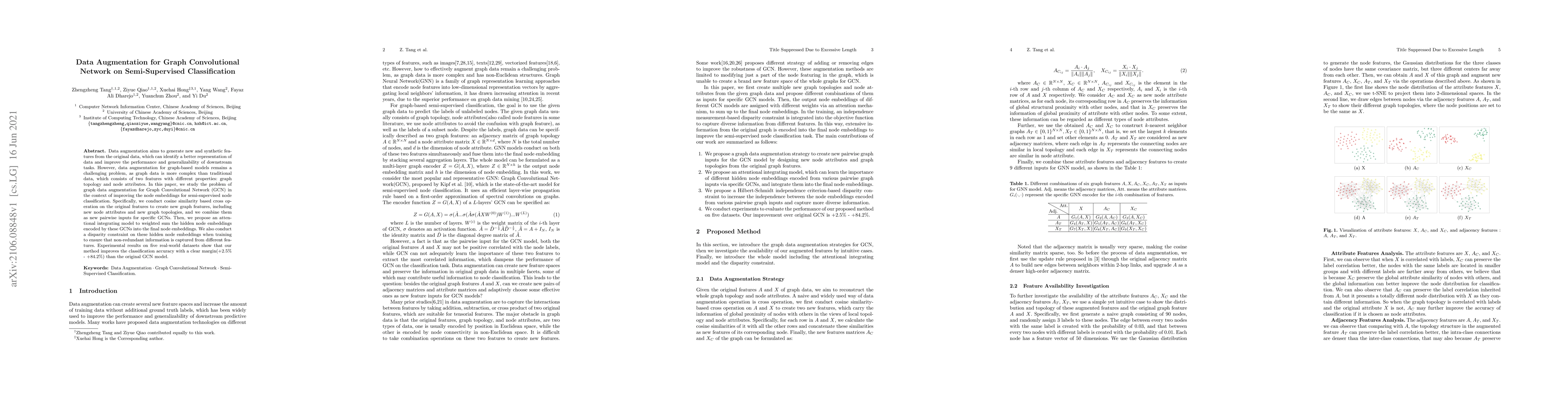 This paper proposes a data augmentation method for graph convolutional networks to improve semi-supervised node classification accuracy, achieving improvements of +2.5% to +84.2% on five real-world datasets.