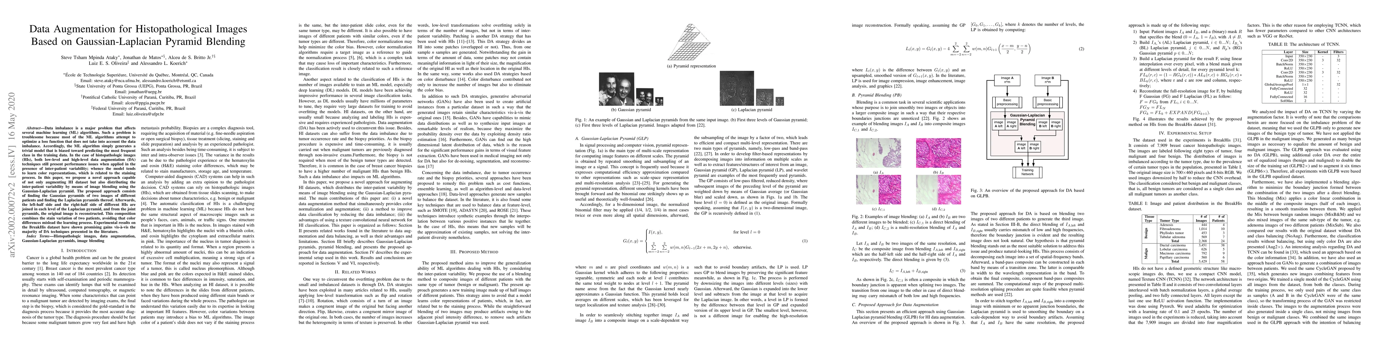 This paper proposes a novel data augmentation technique for histopathologic images using Gaussian-Laplacian pyramid blending to address data imbalance and inter-patient variability. The method blends images from different patients to distribute variability without misleading color differences, showing promising results on the BreakHis dataset.