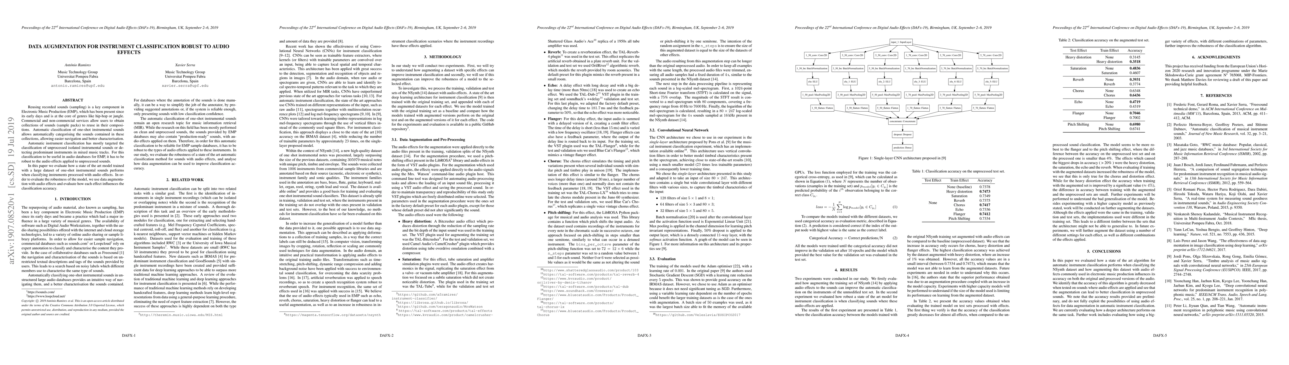 This paper investigates the robustness of a state-of-the-art model for automatic instrument classification when applied to one-shot instrumental sounds that have undergone audio effects. The study employs data augmentation techniques to assess how different audio effects influence classification accuracy.