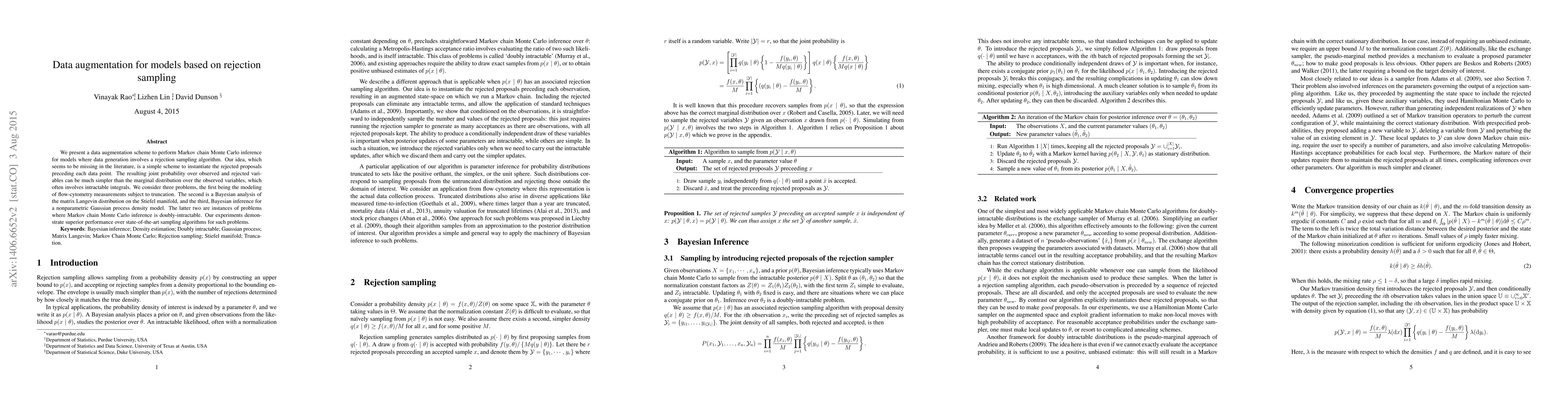 Researchers develop a data augmentation scheme for Markov chain Monte Carlo inference in rejection-sampling models, achieving superior performance over state-of-the-art algorithms for doubly-intractable problems.