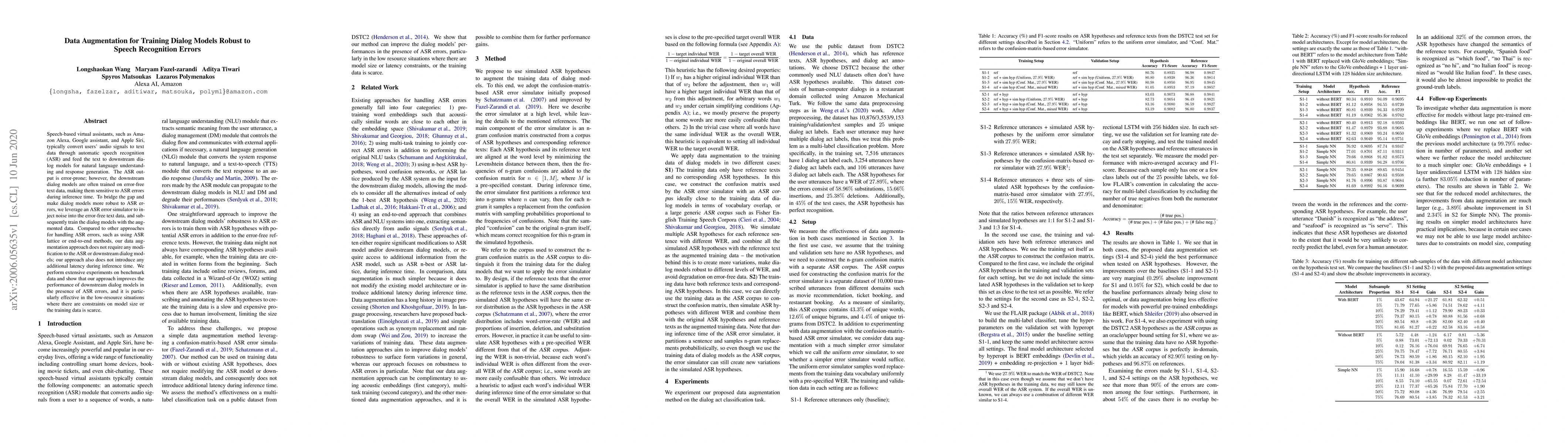 This paper proposes a data augmentation method to train dialog models that are robust to automatic speech recognition (ASR) errors by simulating ASR errors in training data. The method enhances model performance without altering existing ASR or dialog models or adding inference latency, especially benefiting low-resource scenarios.