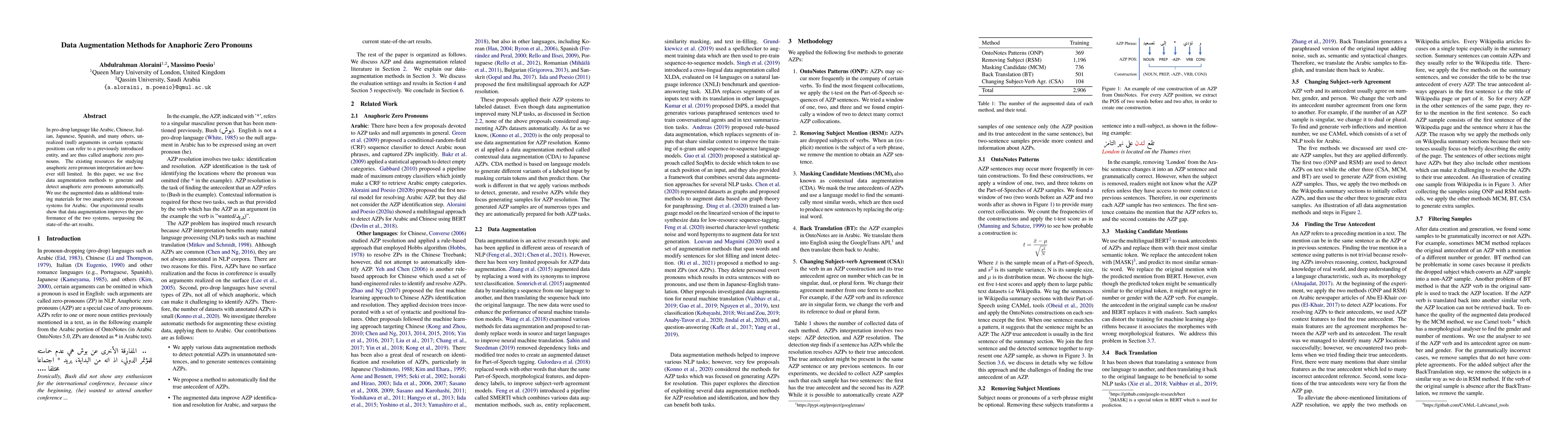 This paper proposes five data augmentation methods to generate anaphoric zero pronouns in pro-drop languages, applying them to Arabic. The augmented data enhance two Arabic anaphoric zero pronoun systems, improving their performance and surpassing existing state-of-the-art results.
