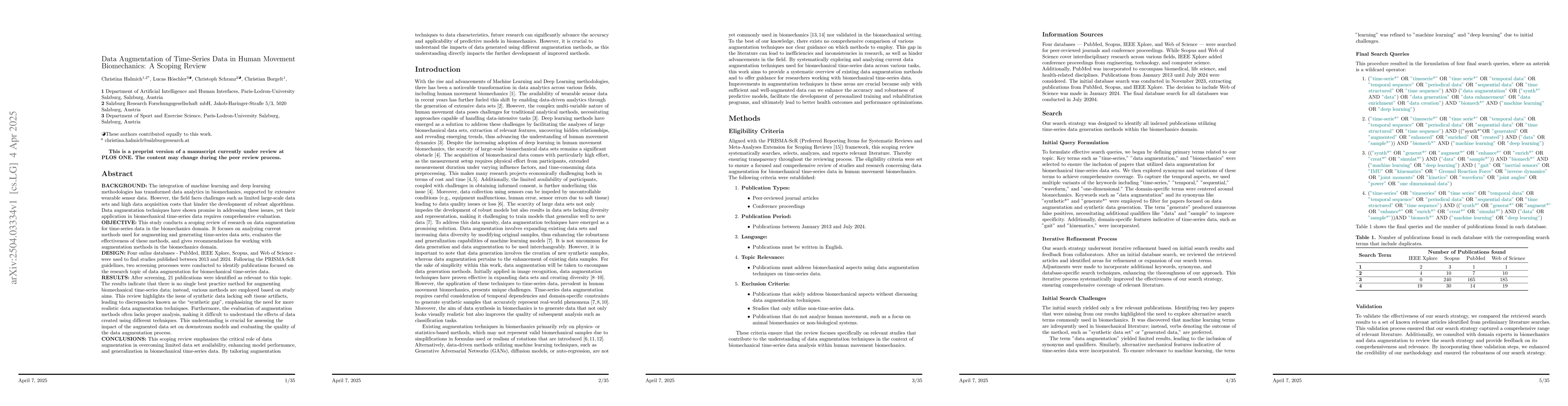 While several studies have explored data augmentation in biomechanics, this scoping review offers a unique, comprehensive analysis of current methods, their effectiveness, and limitations, emphasizing the need for tailored strategies and further research in this area.