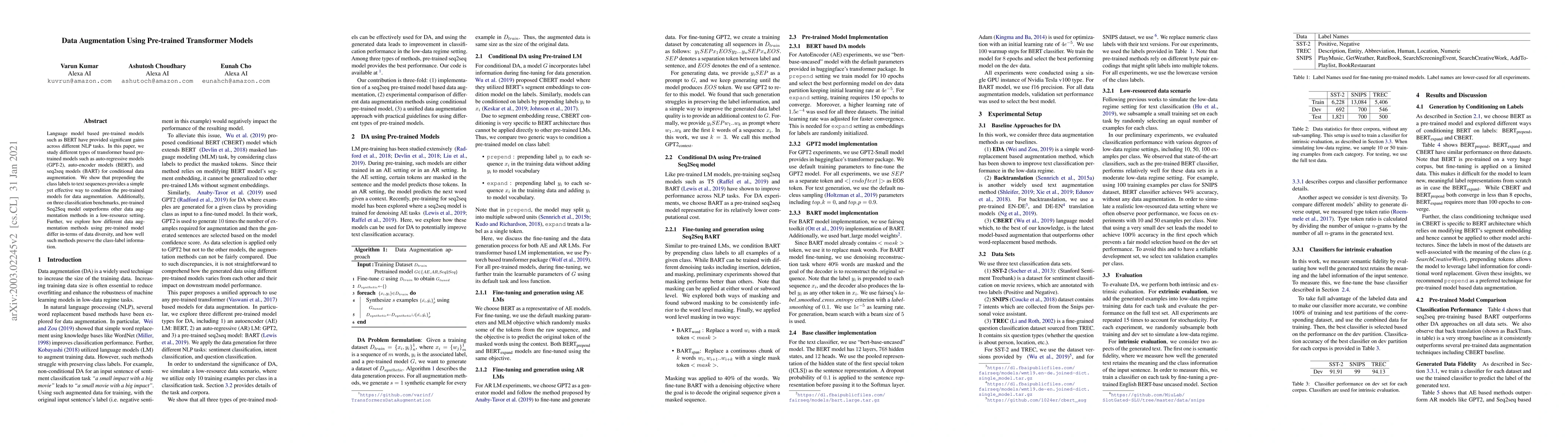 This paper explores the use of transformer-based pre-trained models like BERT, GPT-2, and BART for conditional data augmentation, demonstrating that prepending class labels to text sequences effectively conditions these models. Pre-trained Seq2Seq model BART outperforms other methods in low-resource settings, while the study also examines the diversity and class-label preservation of different augmentation techniques.